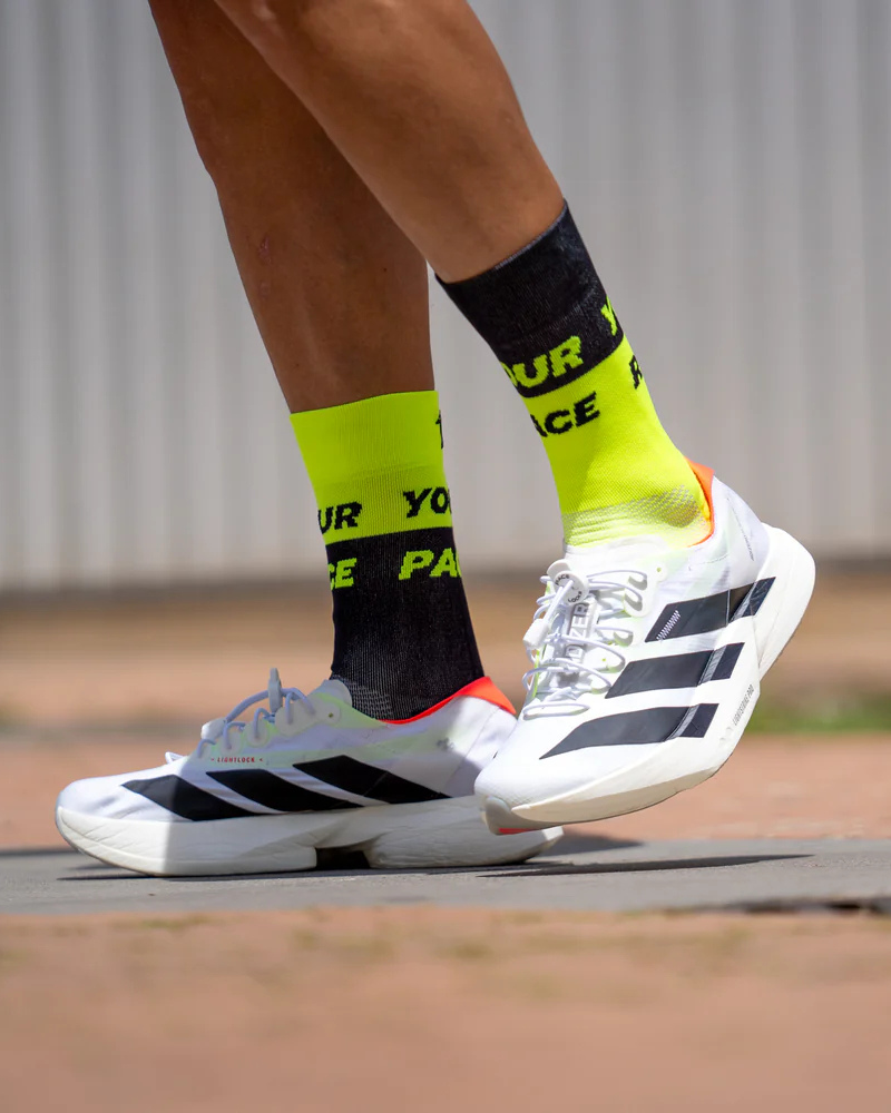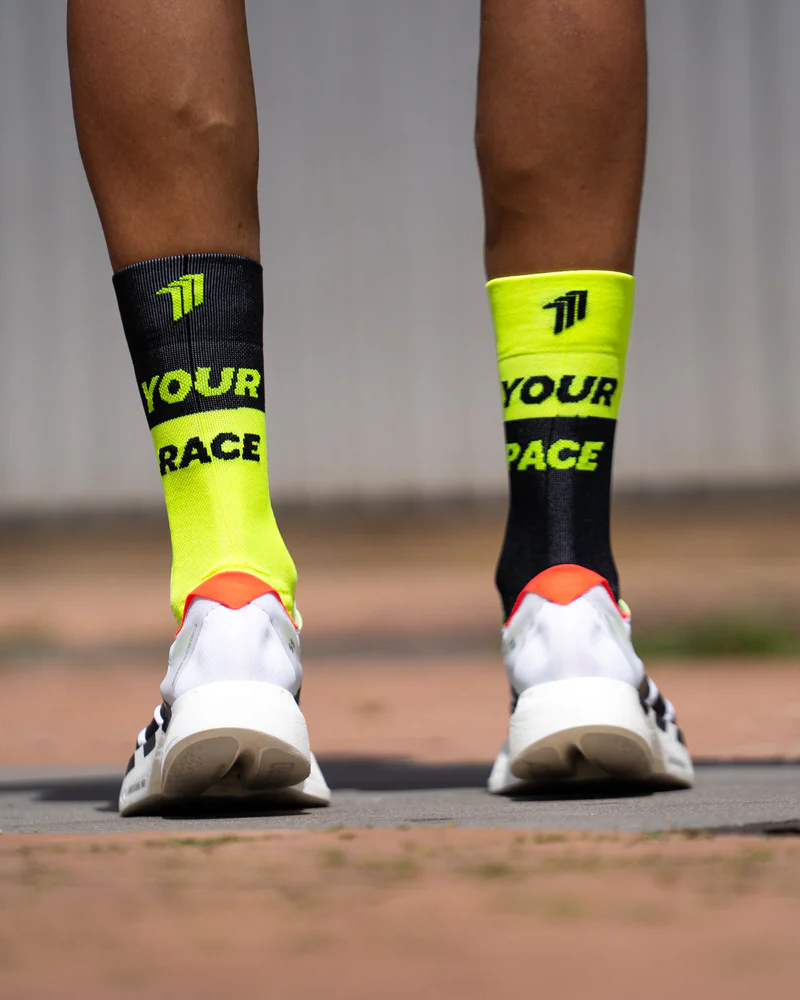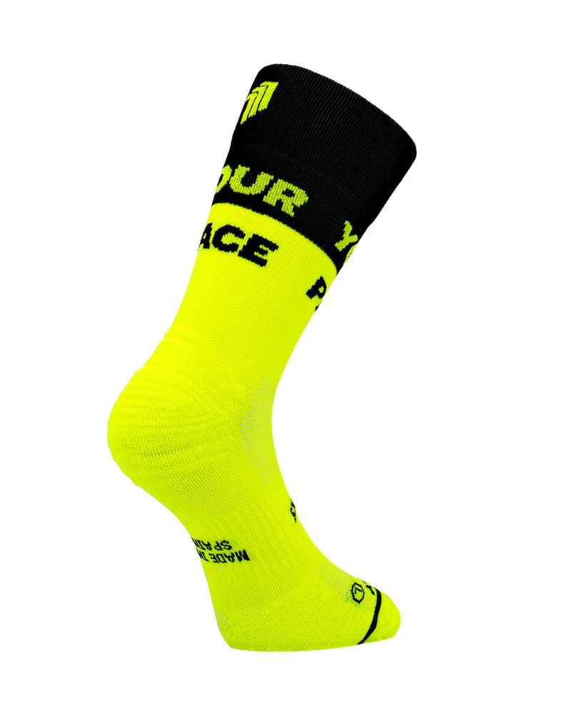 Ponožky SPORCKS RACE PACE-RUNNING SOCKS jsou běžecké ponožky s větší oporou v oblasti kotníku a metatarzální kosti. Mají střední úroveň komprese , která pomáhá prokrvit a snižuje zánět během delších běhů. Pata a špička jsou vyrobeny z froté COOLMAX® pro minimalizaci nárazů, čímž vytvářejí větší pocit pohodlí a prodyšnosti. Zabraňují a předcházejí vzniku puchýřů.