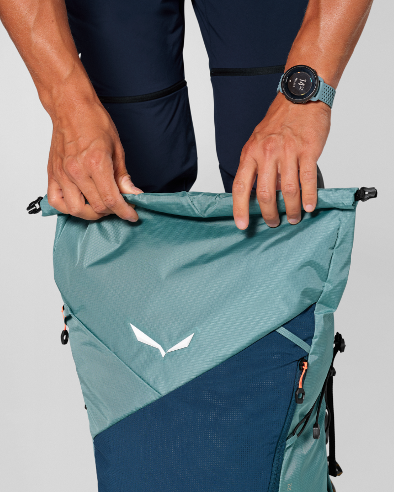 Batoh SALEWA PEDROC CORE 22L je pánsky ľahký a všestranný batoh s rolovacím vrchom s objemom 22 litrov na dlhšie rýchle turistické výlety, navrhnutý pre bezpečné nosenie a suchý chrbát.