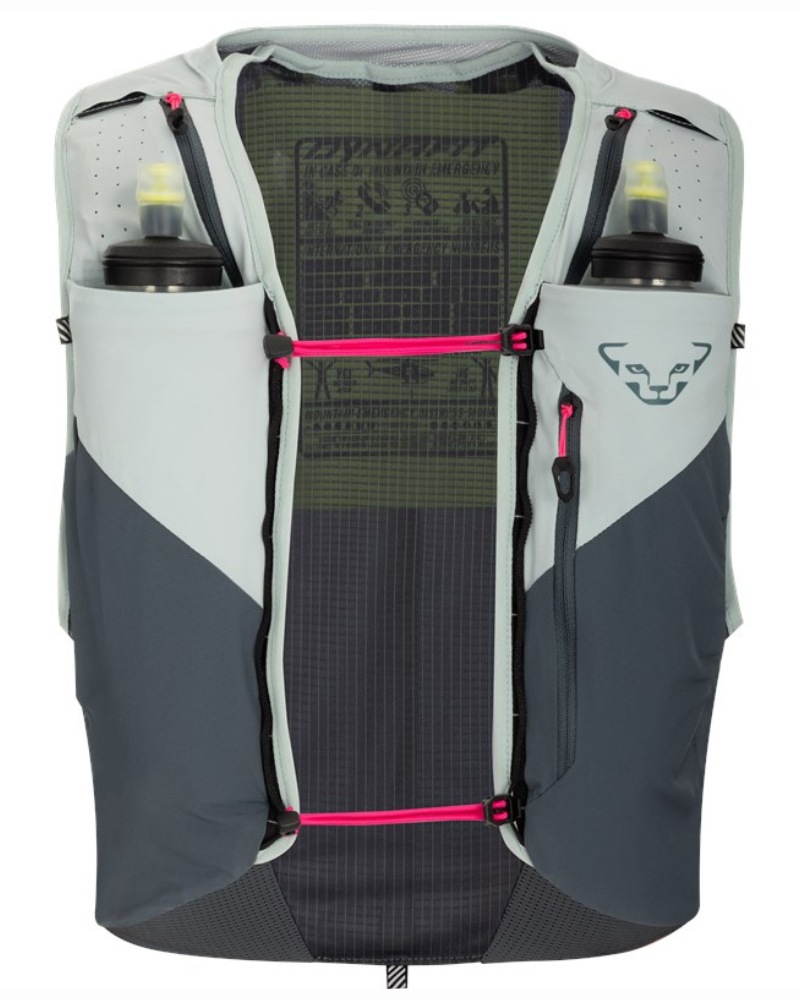 Bežecká vesta  DYNAFIT ULTRA 12 je ľahká unisex vesta s dvoma 500 ml mäkkými fľašami pre ultrabežcov na dlhé traily.