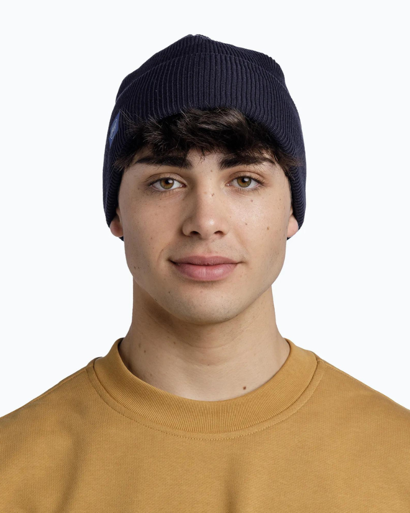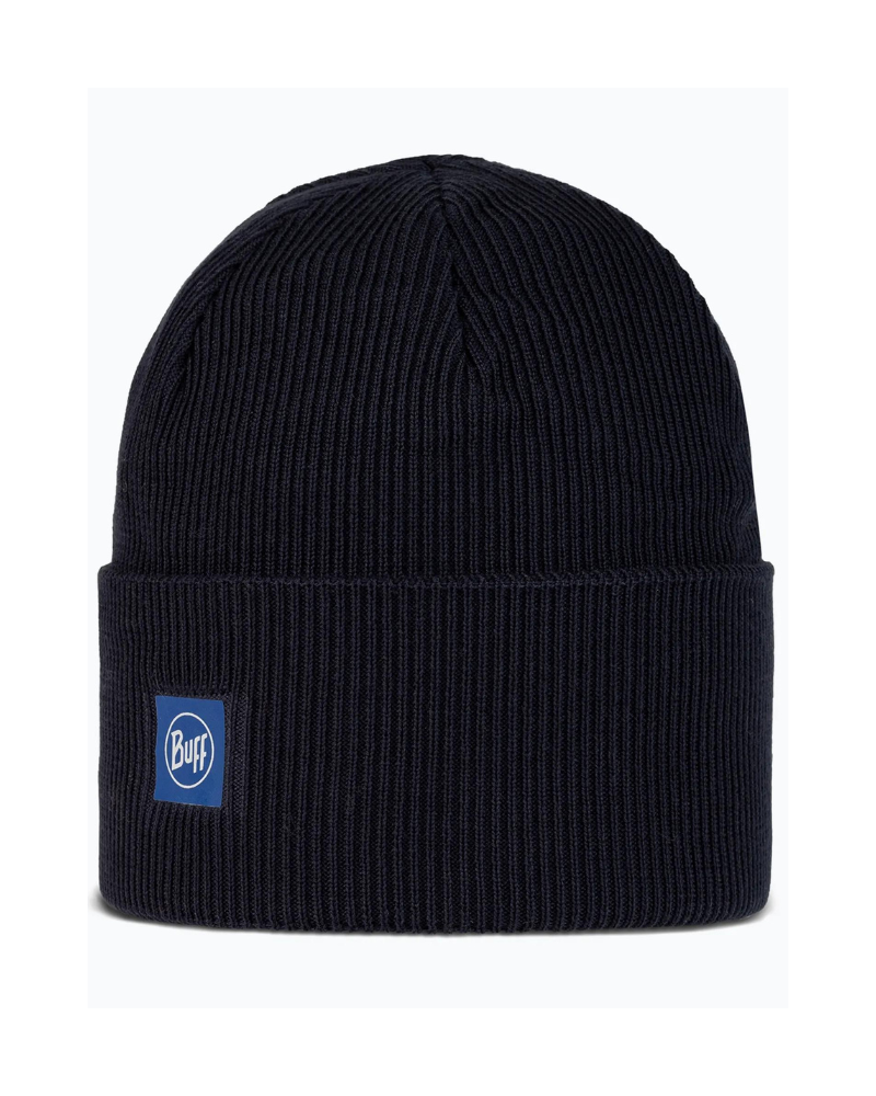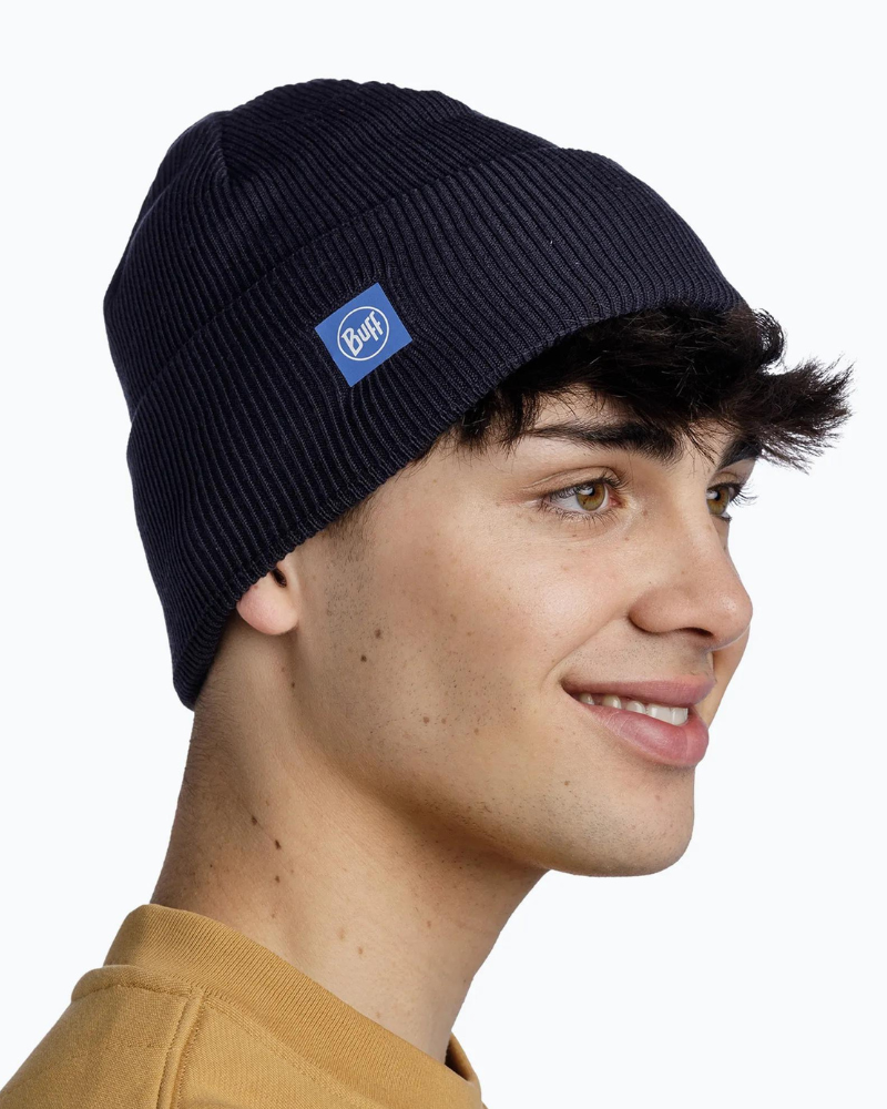 Čiapka BUFF KNITTED BEANIE MARINE je mäkká, štýlová čiapka na každodenné nosenie s rebrovaným úpleto..