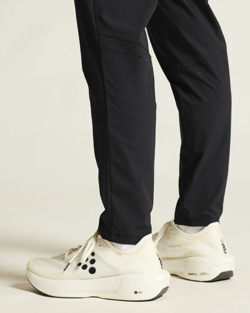 Tyto všestranné tréninkové kalhoty jsou vyrobeny z recyklovaného a vysoce funkčního polyamidu , který nabízí skvělou elasticitu a odvod vlhkosti během intenzivního běhu a podobných aktivit. Elastický pas se stahovací šňůrkou zajišťuje optimální přizpůsobení, zatímco perforovaná tkanina na lýtkách a horních stranách zlepšuje větrání.