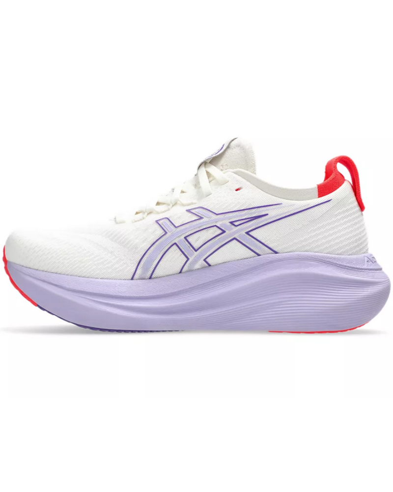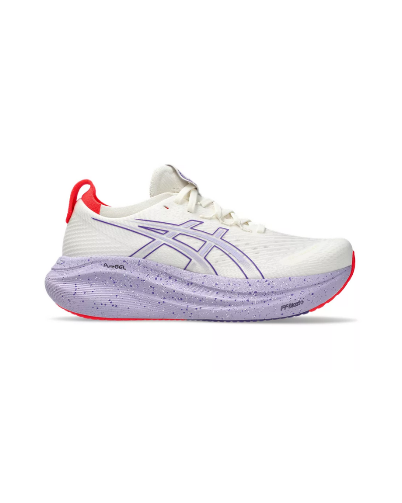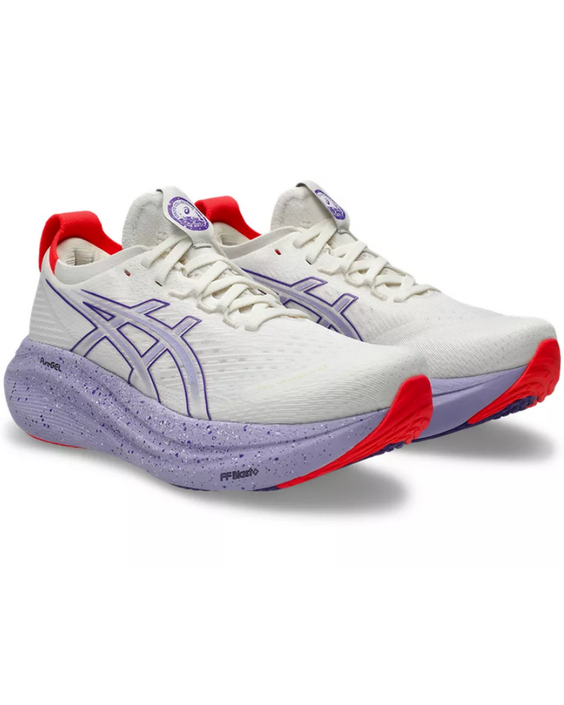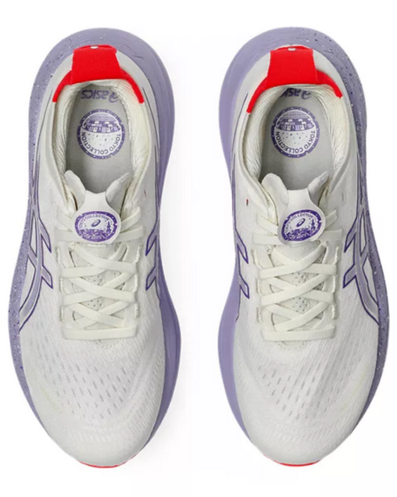 Dámska bežecká obuv ASICS GEL-NIMBUS 27 TOKYO ich mäkké tlmiace vlastnosti vám pomôžu cítiť sa, akoby ste pristávali na oblakoch. Tento dizajn je prepracovaný tak, aby pomohol vytvoriť mäkší a plynulejší beh.