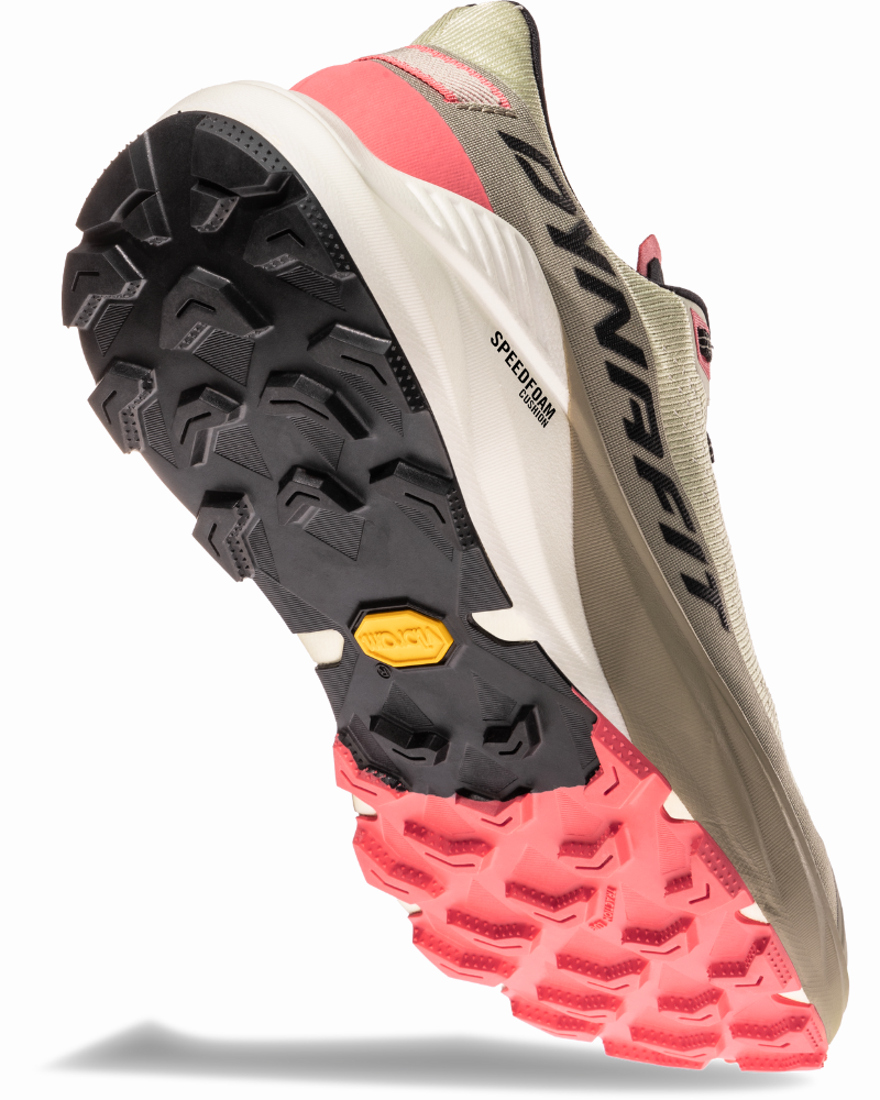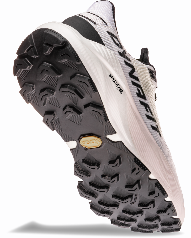 Ultra 100 V3 je váš dokonalý partner pre ultra-dobrodružstvá, ktoré sú navrhnuté tak, aby pomohli bežcom všetkých úrovní dosiahnuť svoje ciele. Jeho mäkšia medzipodrážka SPEEDFOAM, vyrobená zo superkritickej peny, poskytuje vysoké odpruženie a celodenný komfort pri zachovaní vynikajúcej energie. Prvky bočnej stability zaručujú pevnú oporu na akomkoľvek teréne, zatiaľ čo technológia Traction Lug na podrážke Vibram Megagrip poskytuje neprekonateľnú priľnavosť za všetkých podmienok. Vysoko priedušný pletený zvršok vyrobený z 38,8 % recyklovaných materiálov udržuje vaše nohy chladné a pohodlné, a to aj na najdlhších chodníkoch.
