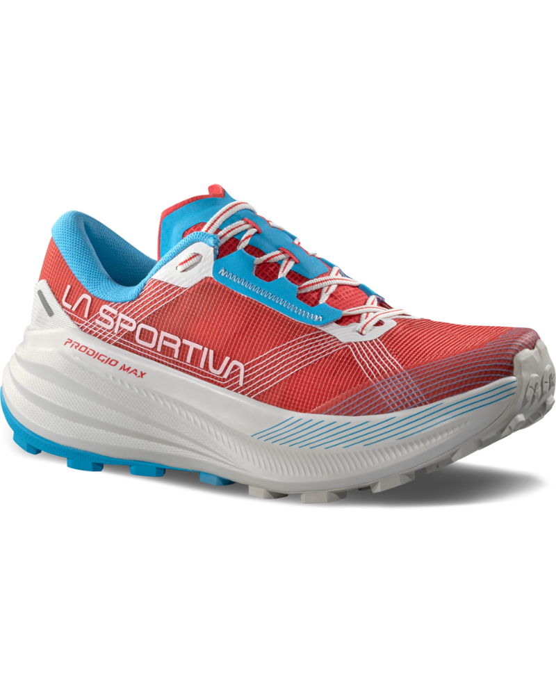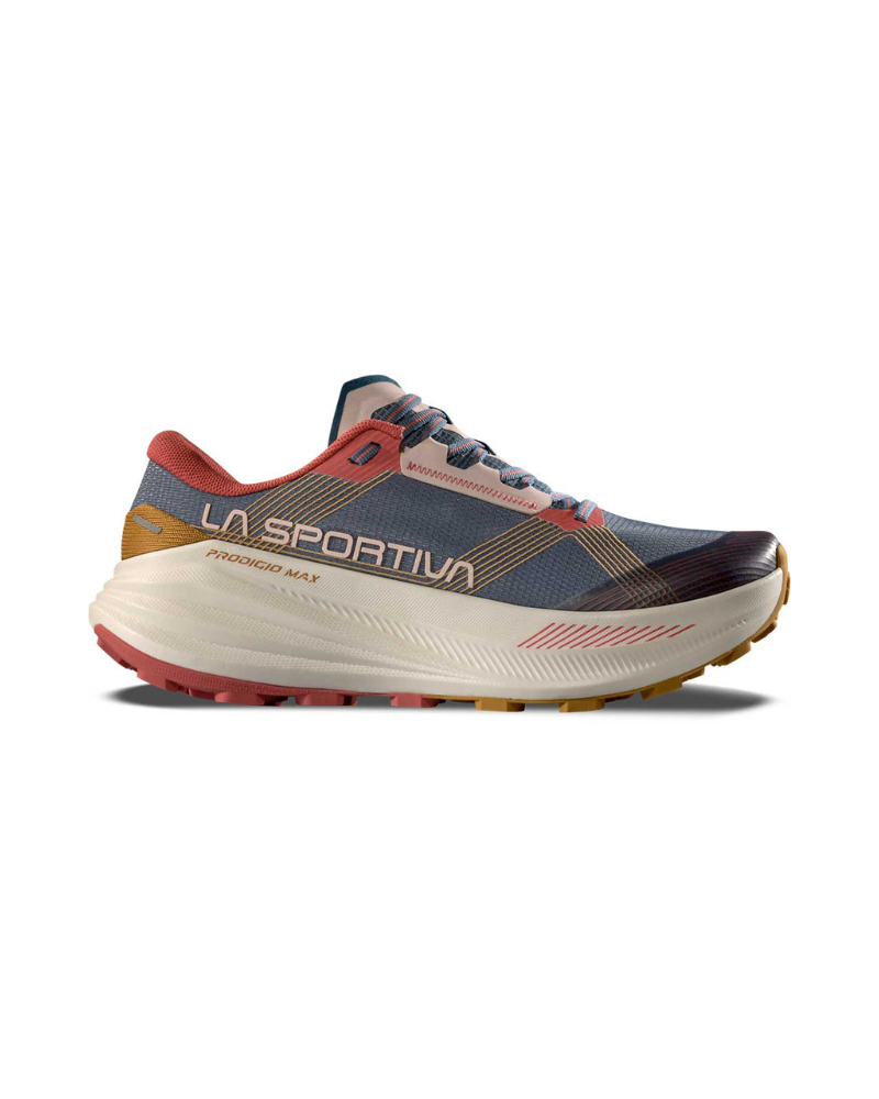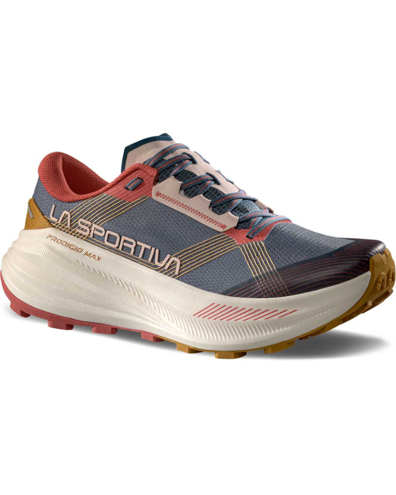Dámska bežecká obuv LA SPORTIVA PRODIGIO MAX W je špeciálne navrhnutá pre ultra nadšencov, ktorí hľadajú maximálne odpruženie, pohodlie, ochranu a stabilitu.