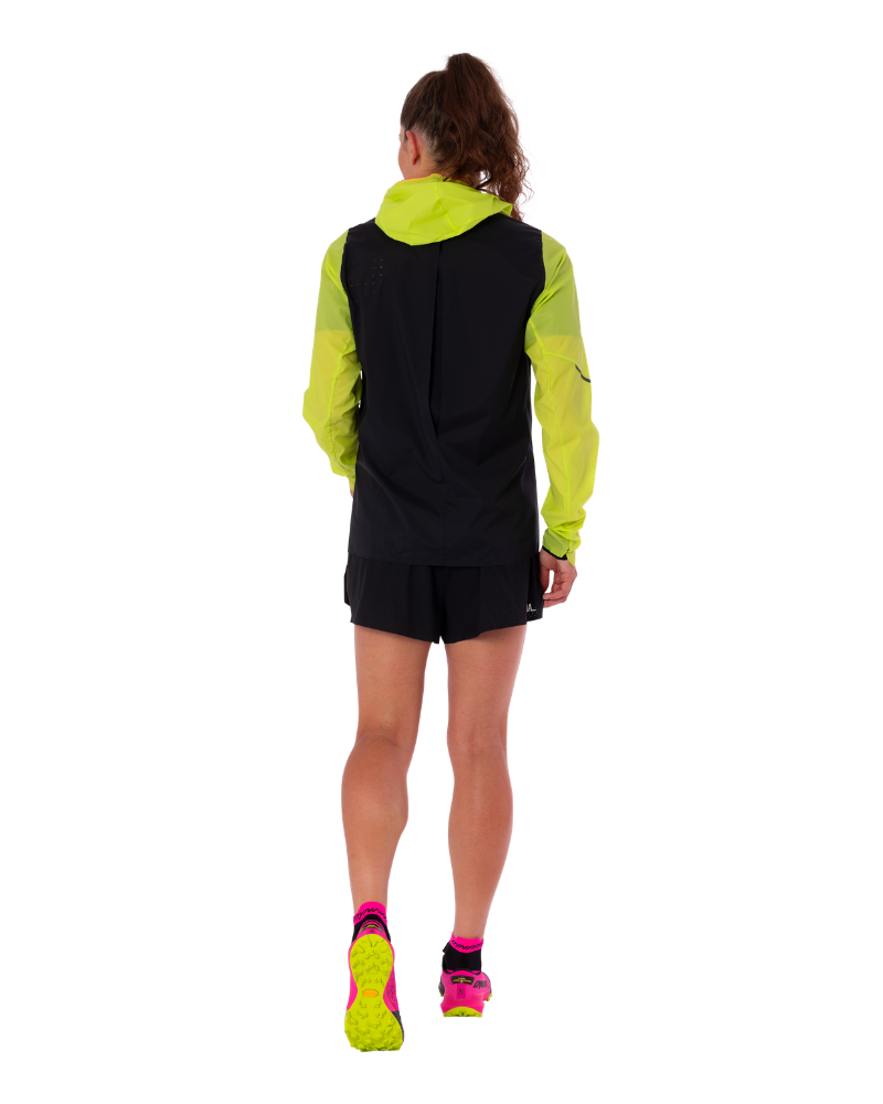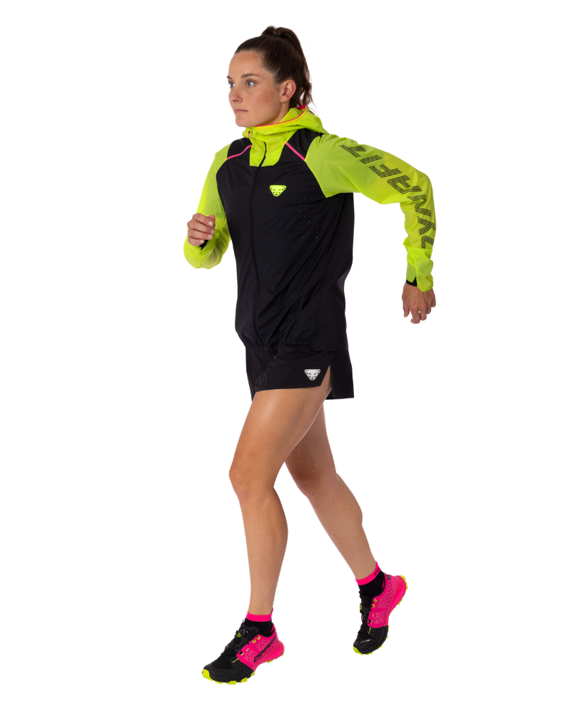 Táto minimalistická bunda je odolná voči vetru a vode a dá sa bez námahy zložiť do kompaktnej veľkosti. To znamená, že ho môžete ľahko schovať do batohu alebo bežeckého opasku a nikdy nebude zbytočne zaťažovaný. Perforácie na strategických miestach na chrbte a pod pazuchami zaručujú optimálnu cirkuláciu vzduchu a reguláciu teploty.