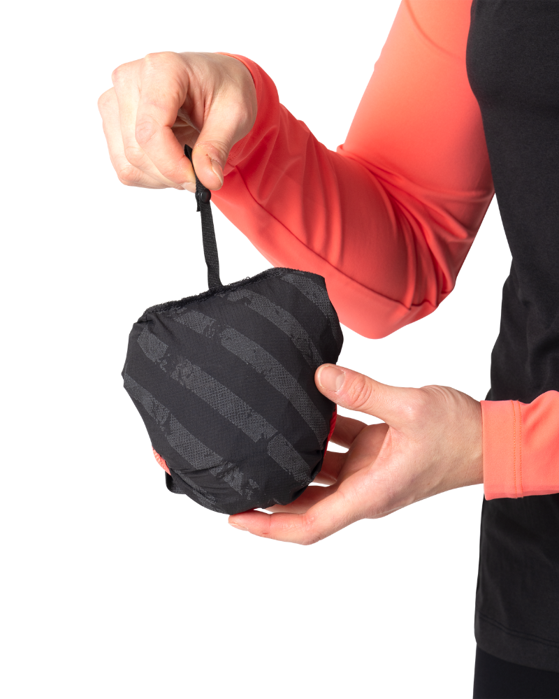 Ideálna pre prechodné obdobie a ambicióznych bežcov: Vďaka malým rozmerom je bunda bez PFAS vždy po ruke, keď potrebujete spoľahlivú ochranu pred chladom. Umožňuje optimálnu reguláciu teploty a úplnú slobodu pohybu. Extra objem v zadnej časti umožňuje jej nosenie cez bežeckú vestu. Inteligentné: Pri veľkej záťaži môžete bundu dokorán otvoriť a zapnúť ju vo výške hrudníka pomocou patentného gombíka. Priliehavú kapucňu je možné v prípade potreby zrolovať a zaistiť, aby vám pri behu neprekážala.