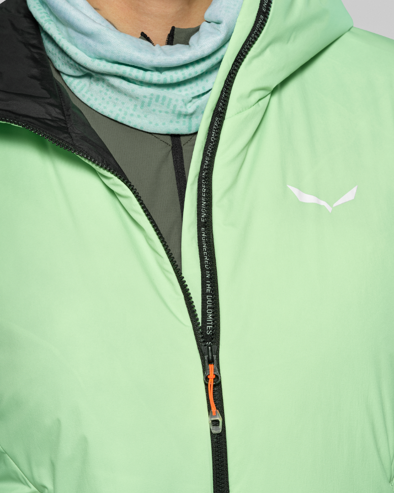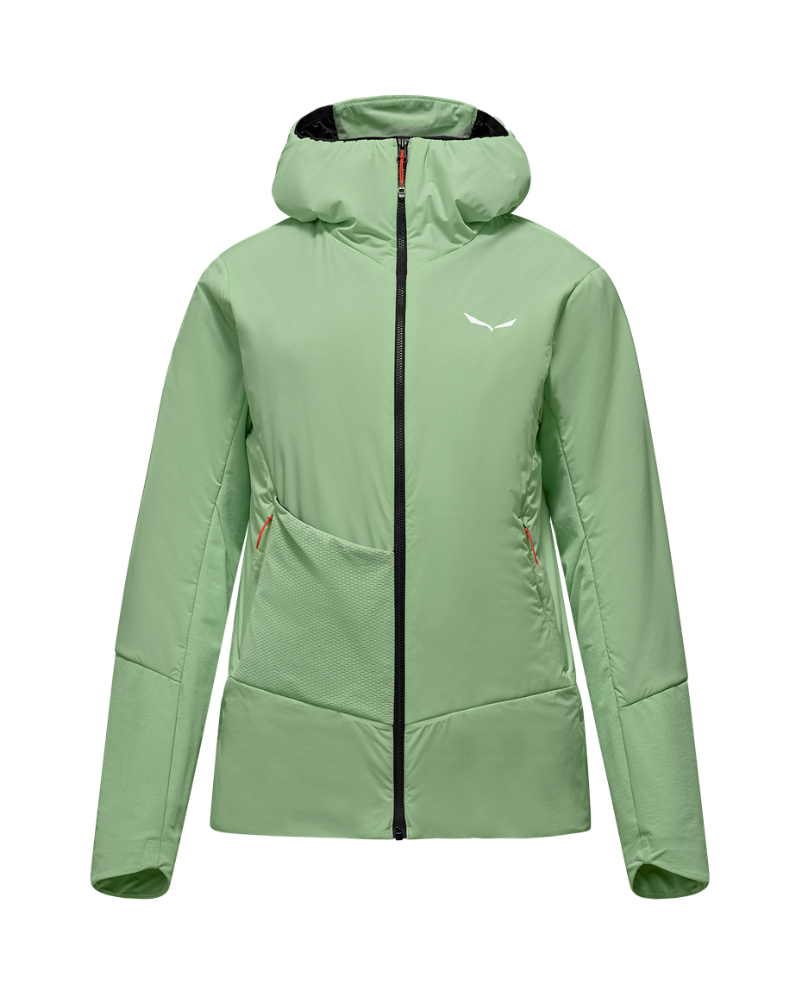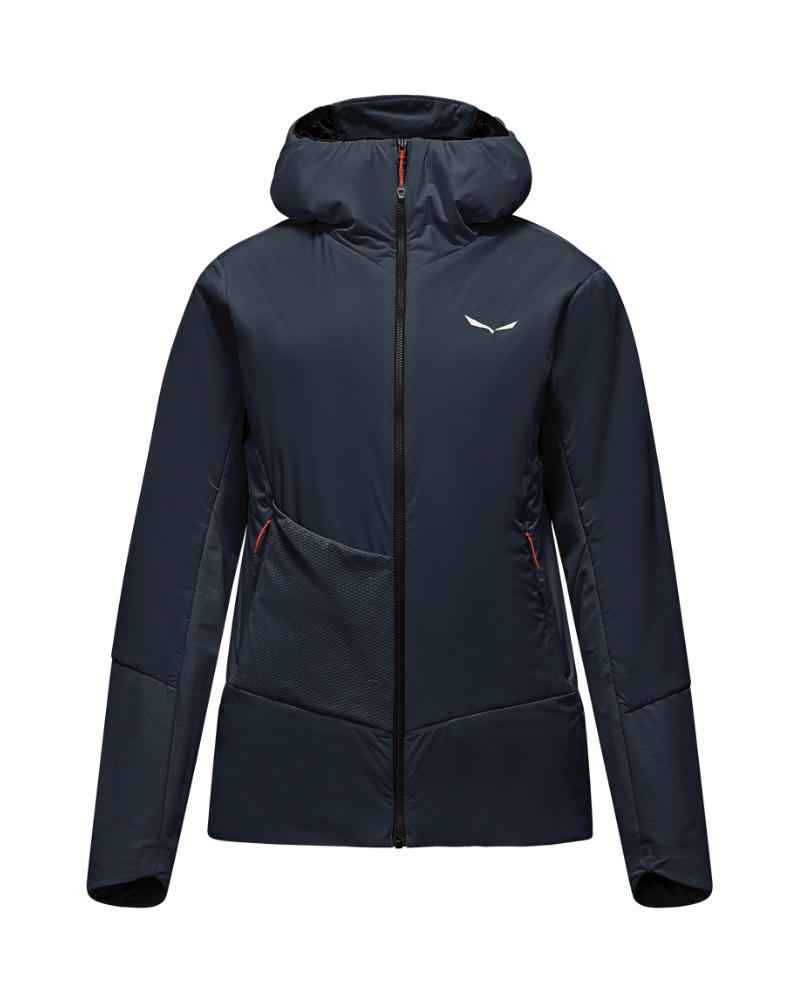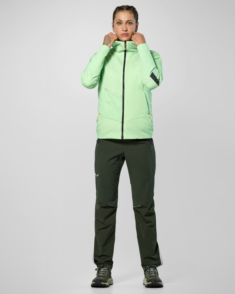 Dámska bunda SALEWA PEDROC TW AIR HYB JACKET W ponúka skladnú izoláciu prispôsobenú potrebám tela s vysokým pomerom tepla k váhe, ideálnou pre rýchlu turistiku a skialpinizmus v chladných podmienkach.