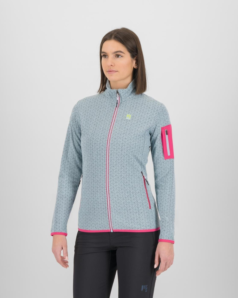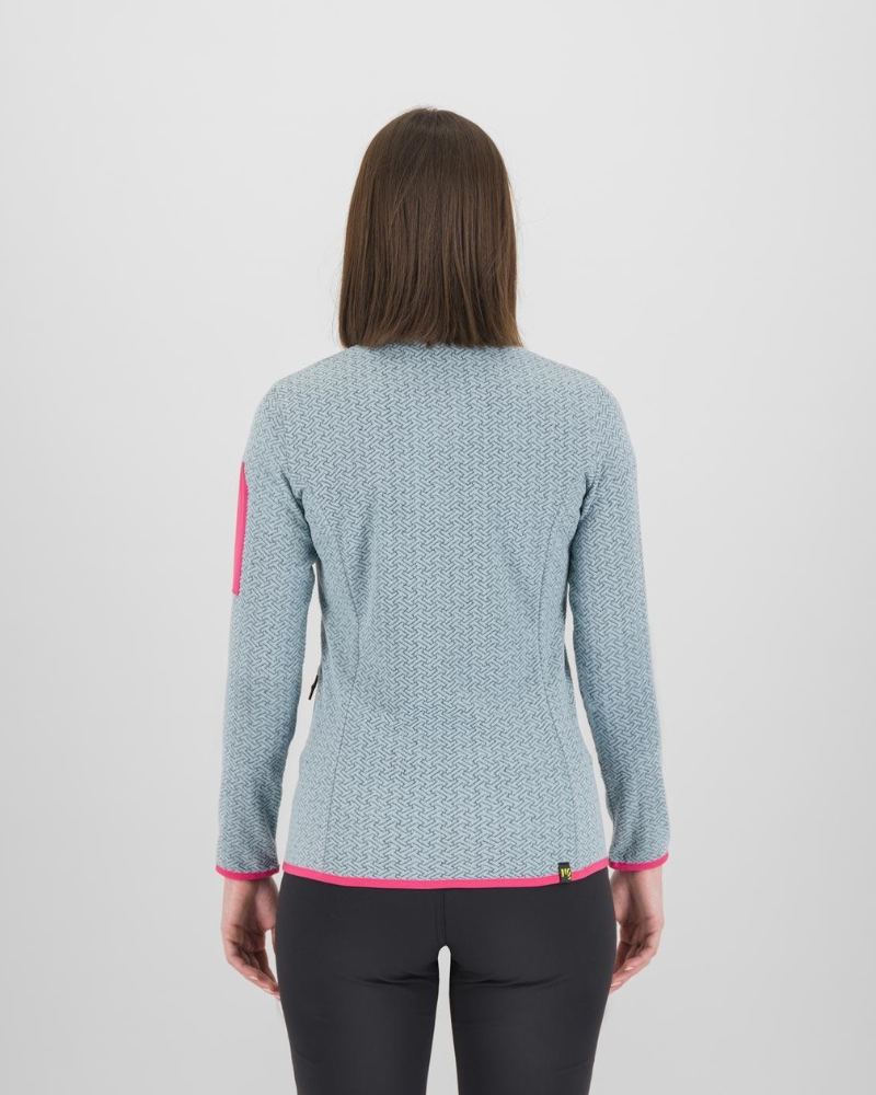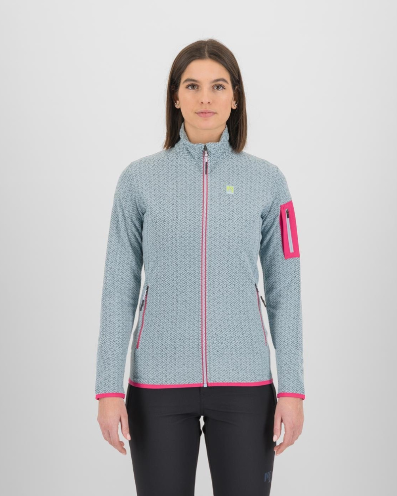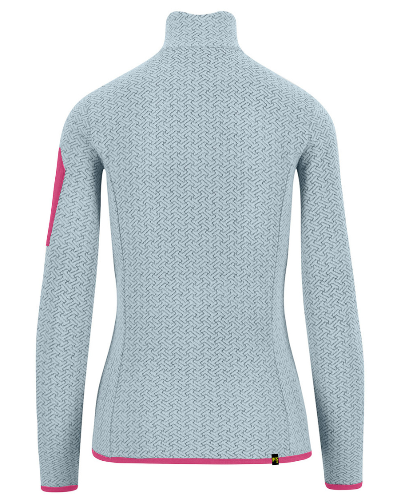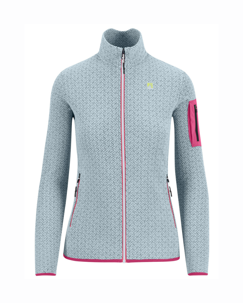 Dámska mikina KARPOS MESDI je ľahká a zbaliteľná flísovka s celoplošným zipsom, perfektná ako druhá zimná vrstva. Nezvyčajná textúra 100 % recyklovanej látky je pútavá a vďaka svojmu štýlu je ideálna na zimné aeróbne aktivity, ale aj na bežné nosenie. Má dve predné vrecká na zips, vrecko na rukáve a elastický lem na koncoch rukávov a spodnej časti odevu.