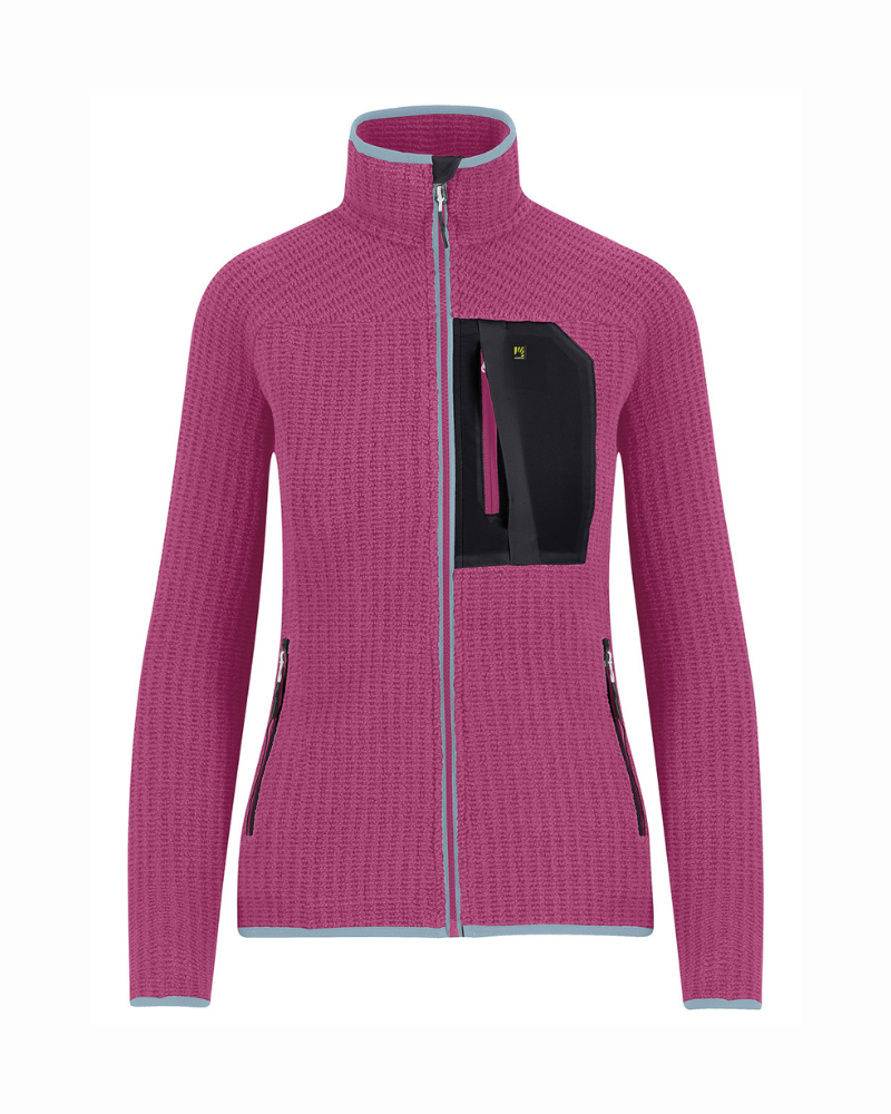 Dámska mikina KARPOS ROCCHETTA EVO HOODIEv zime spoľahlivo poslúži ako druhá izolačná vrstva pod bundou, v prechodných obdobiach ako ľahká samostatná bunda. Dobre funguje na horských túrach, pri lezení, ale aj na chate či pri bežnom nosení v meste. Vďaka svojmu retro vzhľadu a Dynamic fit strihu spája technickú funkčnosť s ležérnym štýlom. Je vyrobená zo 100 % recyklovanej látky, má dve vrecká na zips v spodnej časti a jedno praktické uzavreté vrecko na hrudi.