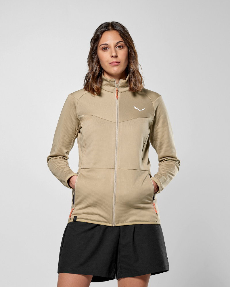 Dámská mikina SALEWA PUEZ CAMMINO PL JKT W je všestranná a technická lehká izolační střední vrstva.