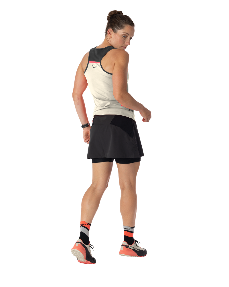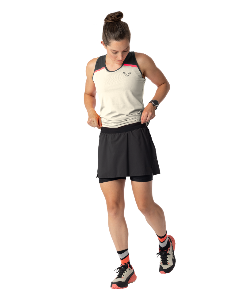Ľahká bežecká sukňa s vnútornými sieťovanými šortkami pre vynikajúce pohodlie. Dômyselná bežecká sukňa Alpine Pro 2v1 pre ženy kombinuje priliehavé sieťované nohavice s vzdušnou sukňou, vďaka čomu je perfektná na beh v trati. Keď vás pri behu odiera vnútorná strana stehien, je to koniec zábavy na trati. Našťastie máte sukňu Alpine Pro 2v1! Inteligentný dizajn 2v1 zaisťuje maximálne pohodlie pri behoch na stredné a dlhé trate a zaručuje bezbolestný výsledok. Prémiová tkanina je na pokožke veľmi príjemná. Navyše poskytuje vysokú priedušnosť a vetranie aj pri náročných behoch. Priliehavé nohavice s plochými švami zabraňujú odieraniu a spoľahlivo odvádzajú vlhkosť. Ľahká, vzdušná vrchná sukňa z recyklovanej tkaniny sa pýši ženským, atletickým vzhľadom na horách a zaručene pritiahne niekoľko ďalších pohľadov.