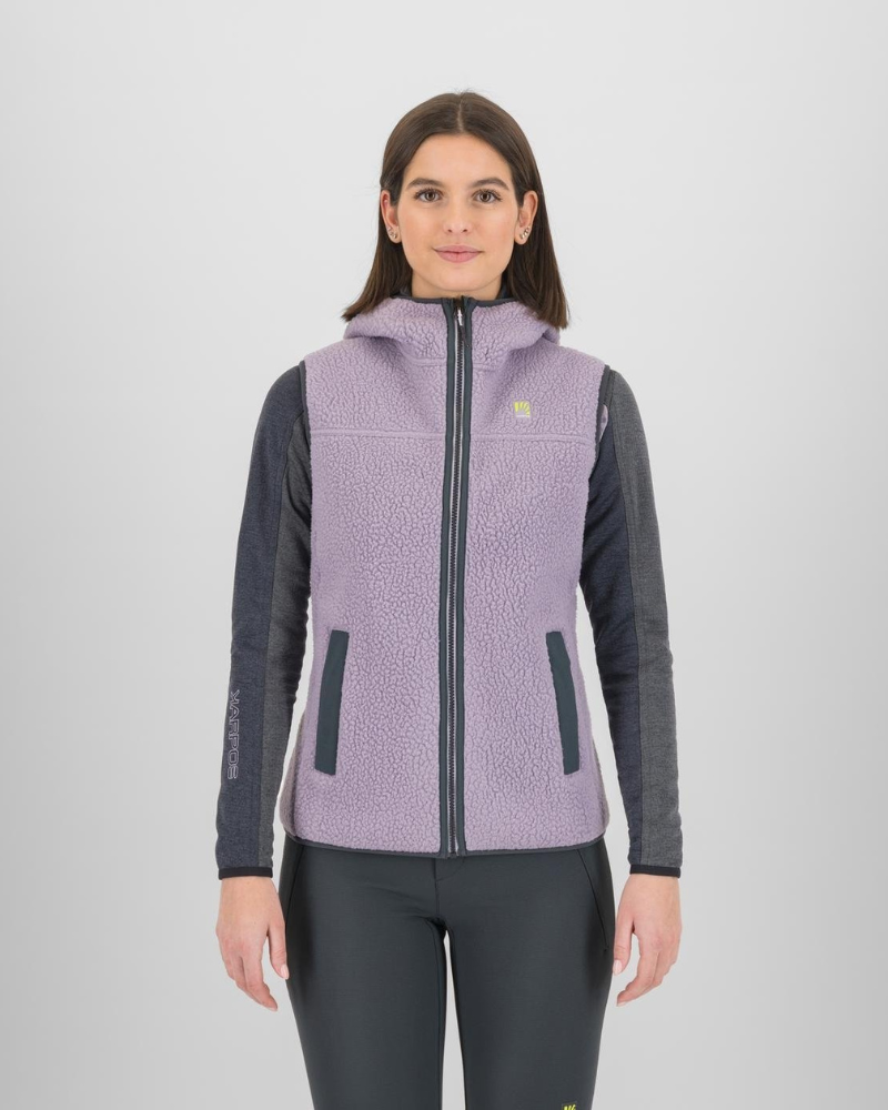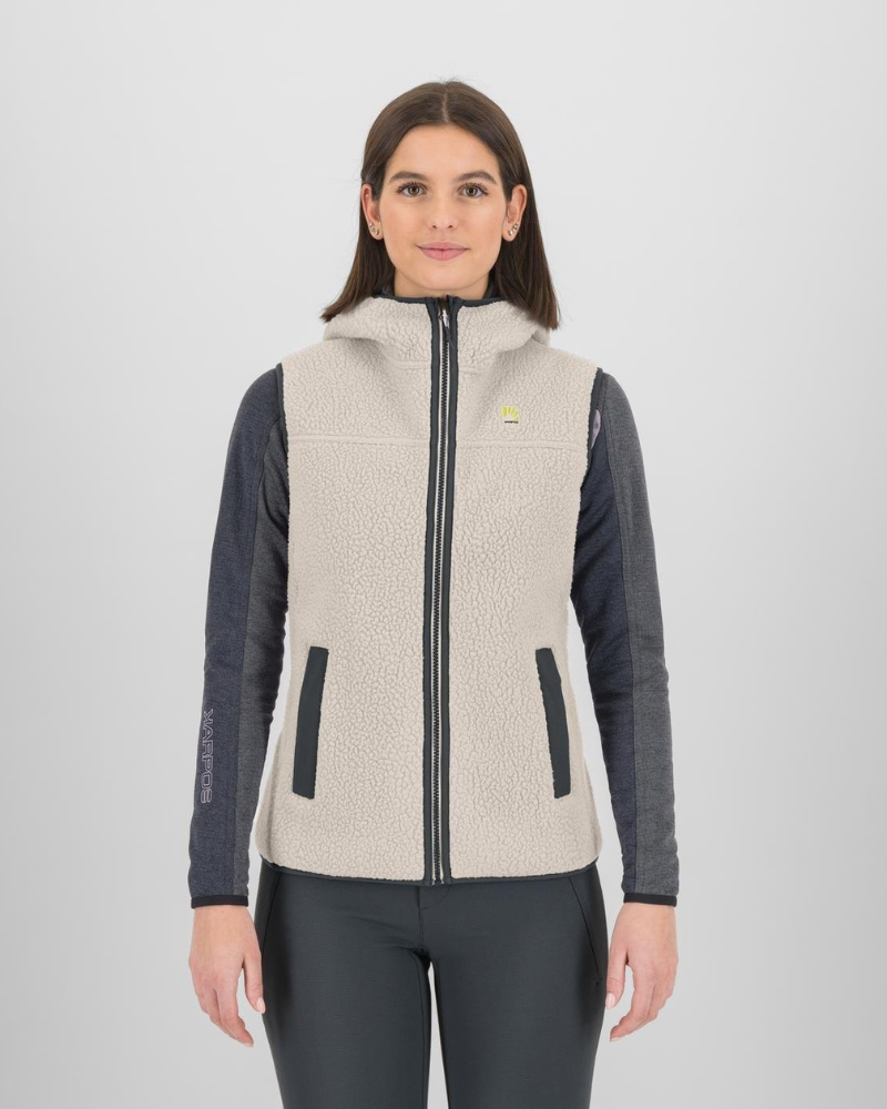 Dámska vesta KARPOS MOIOZZA RETRO FLEECE VEST je teplá a všestranná vesta pre rôzne outdoorové a rekreačné aktivity. Ideálne na nenáročné výlety alebo v kombinácii s niektorým z produktov z našej rady Lifestyle. Praktické náprsné vrecko na zips a dve väčšie predné vrecká sú ľahko dostupné.