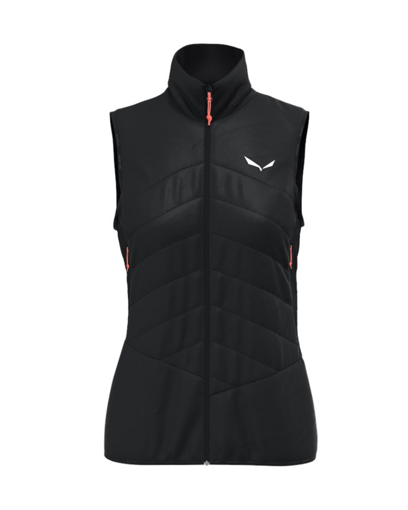 Dámska vesta SALEWA ORTLES HYB TWR VEST W je všestranná, vetruodolná a vodoodpudivá s hybridnou izoláciou TirolWool® Responsive zmapovanou na tele pre horolezectvo a alpské použitie.