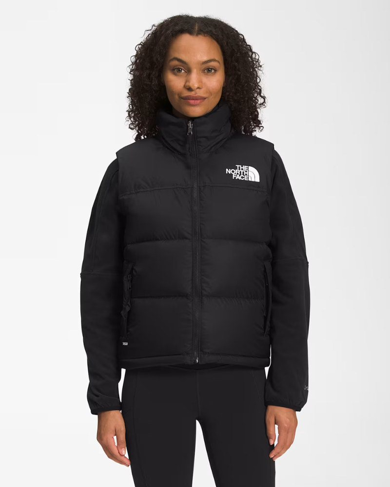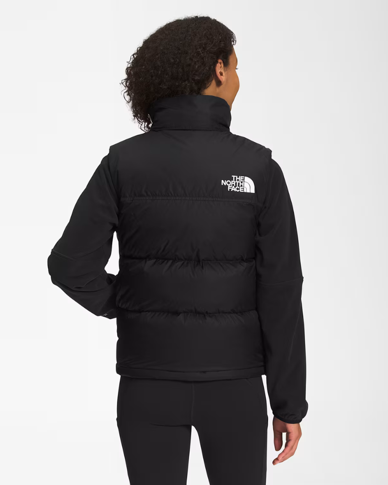 Dámska vesta THE NORTH FACE 1996 Retro Nuptse Vest - Doma na horách alebo v meste je pánska Retro Nuptse Vest z roku 1996 ikonou chladného počasia z dobrého dôvodu. Táto ultra teplá vrstva má odolnú ripstopovú vonkajšiu vrstvu, nadrozmerné páperové prepážky a možno ju uložiť do pravého vrecka, keď teploty stúpnu.