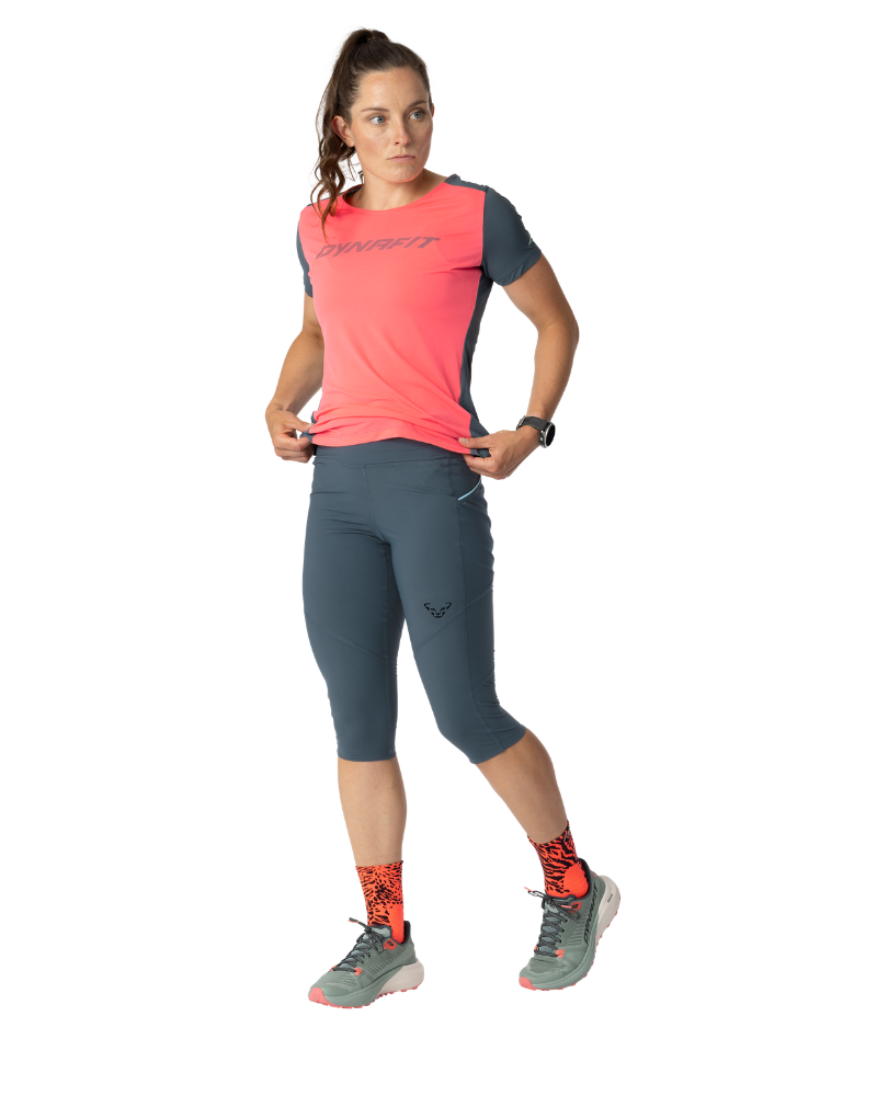 Dámske 3/4 nohavice DYNAFIT ALPINE TIGHTS W s praktickými bočnými sieťovanými vreckami pre beh s vysokou intenzitou.
