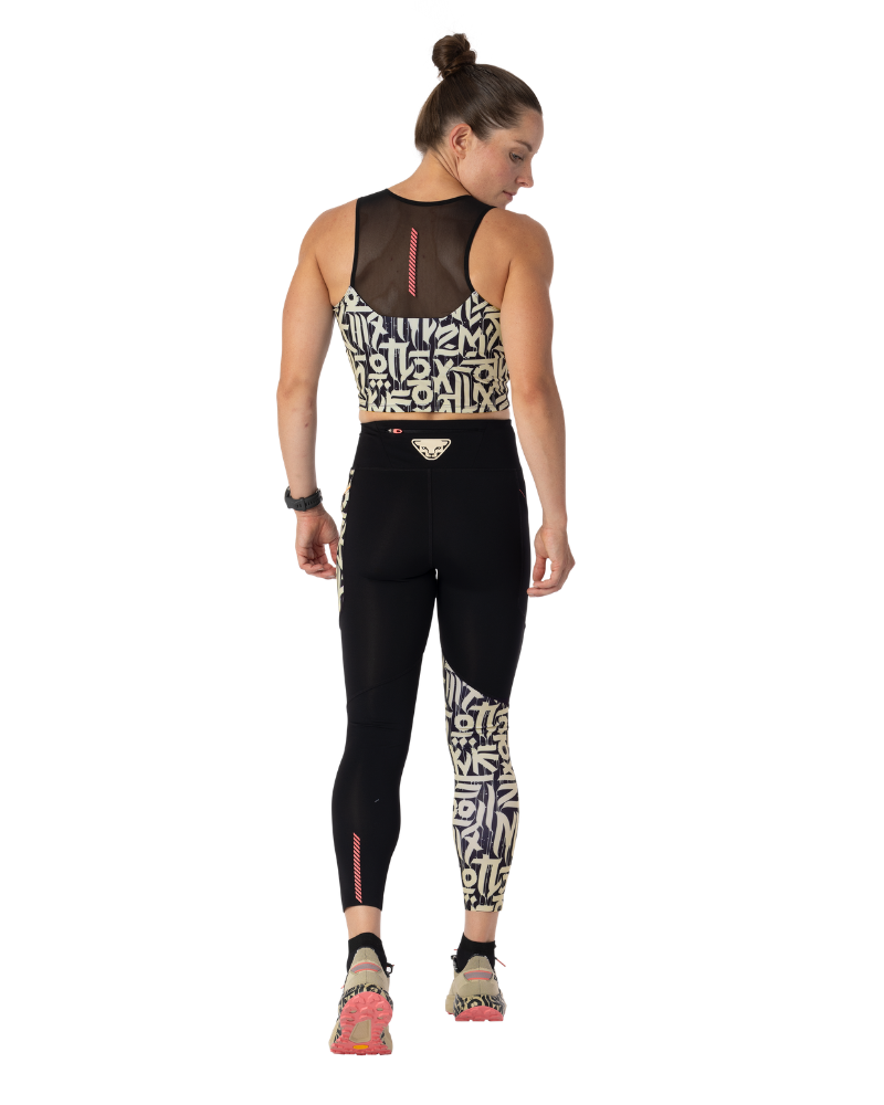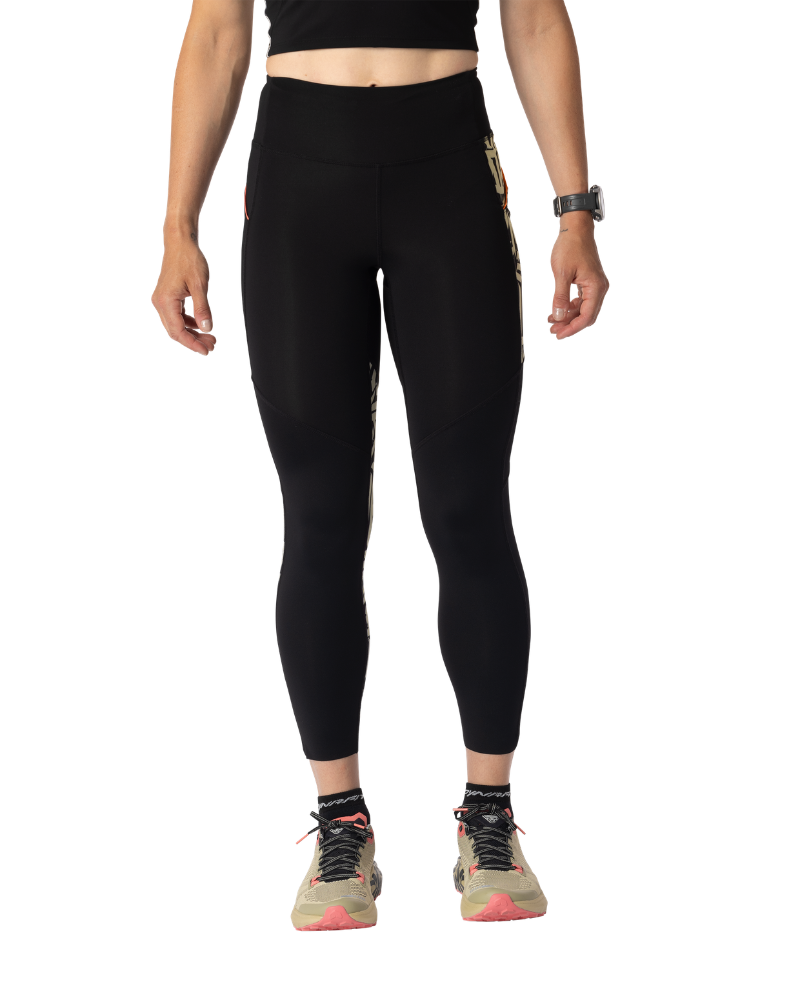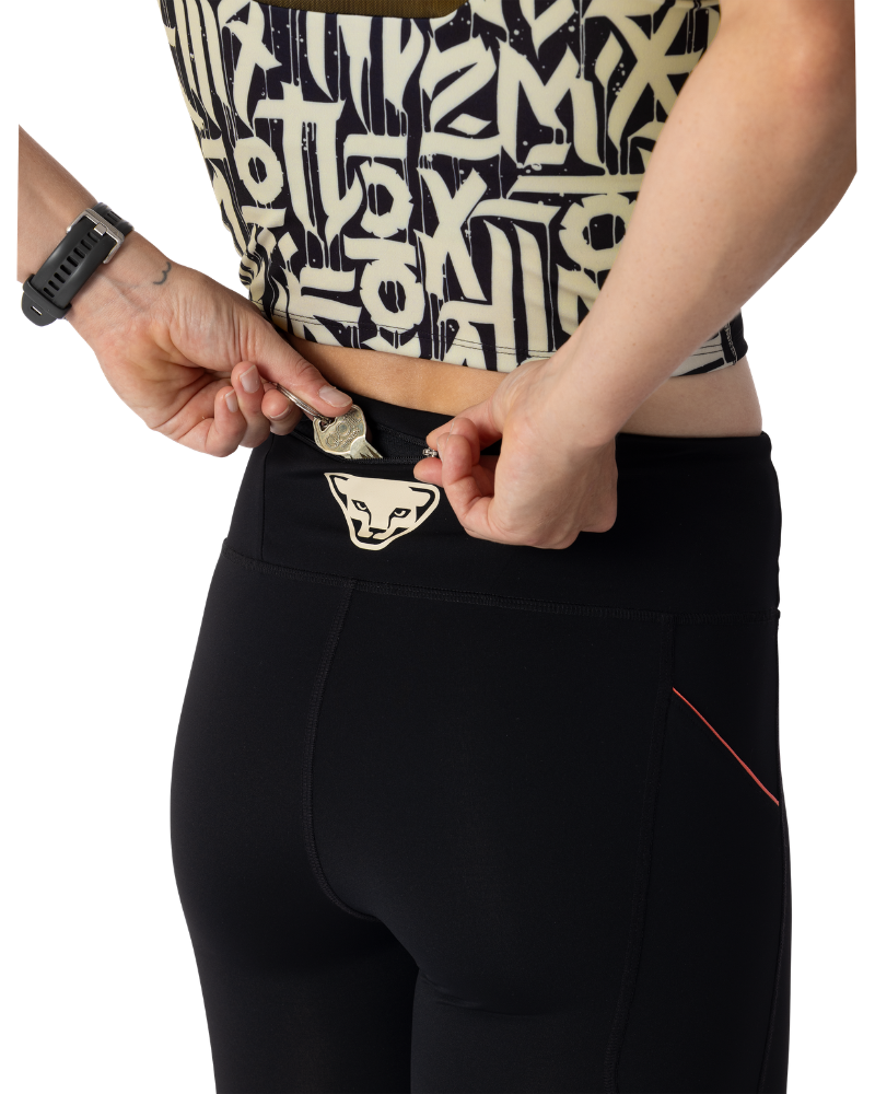 Dámske legíny DYNAFIT TRAIL 7/8 TIGHTS W s grafickou potlačou a praktickými bočnými vreckami.