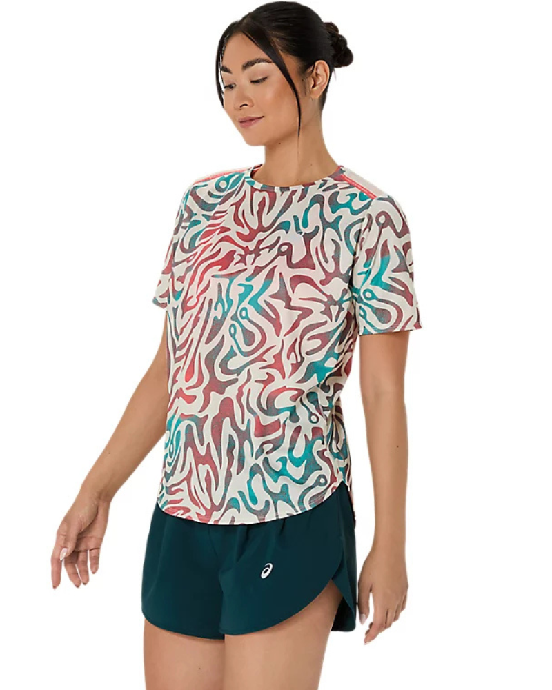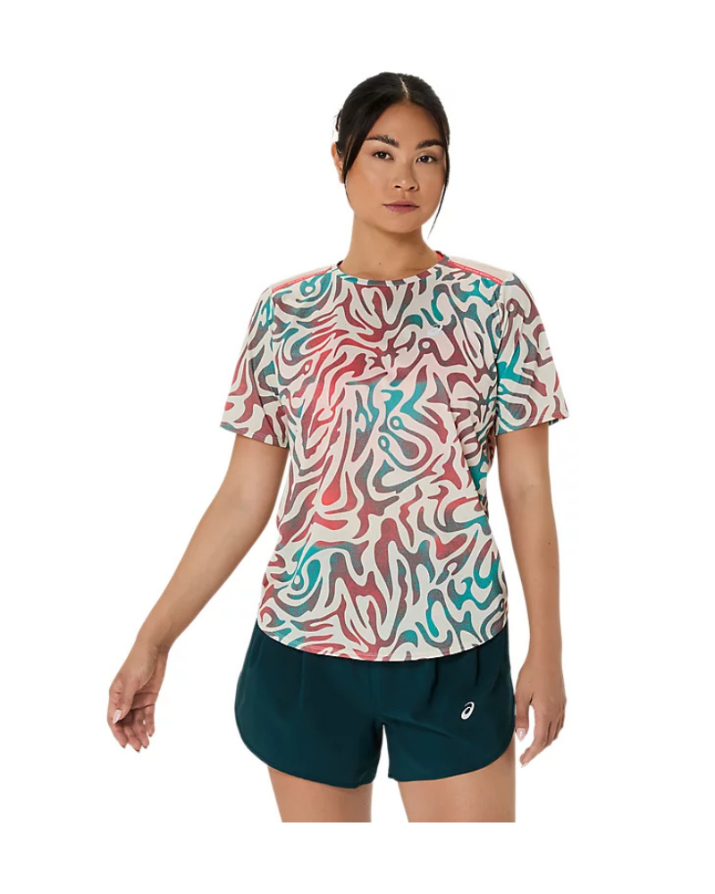 Dámske tričko ASICS ROAD ALL OVER PRINT SS TOP pre rôzne ročné obdobia, je navrhnuté s ohľadom na priedušnosť.