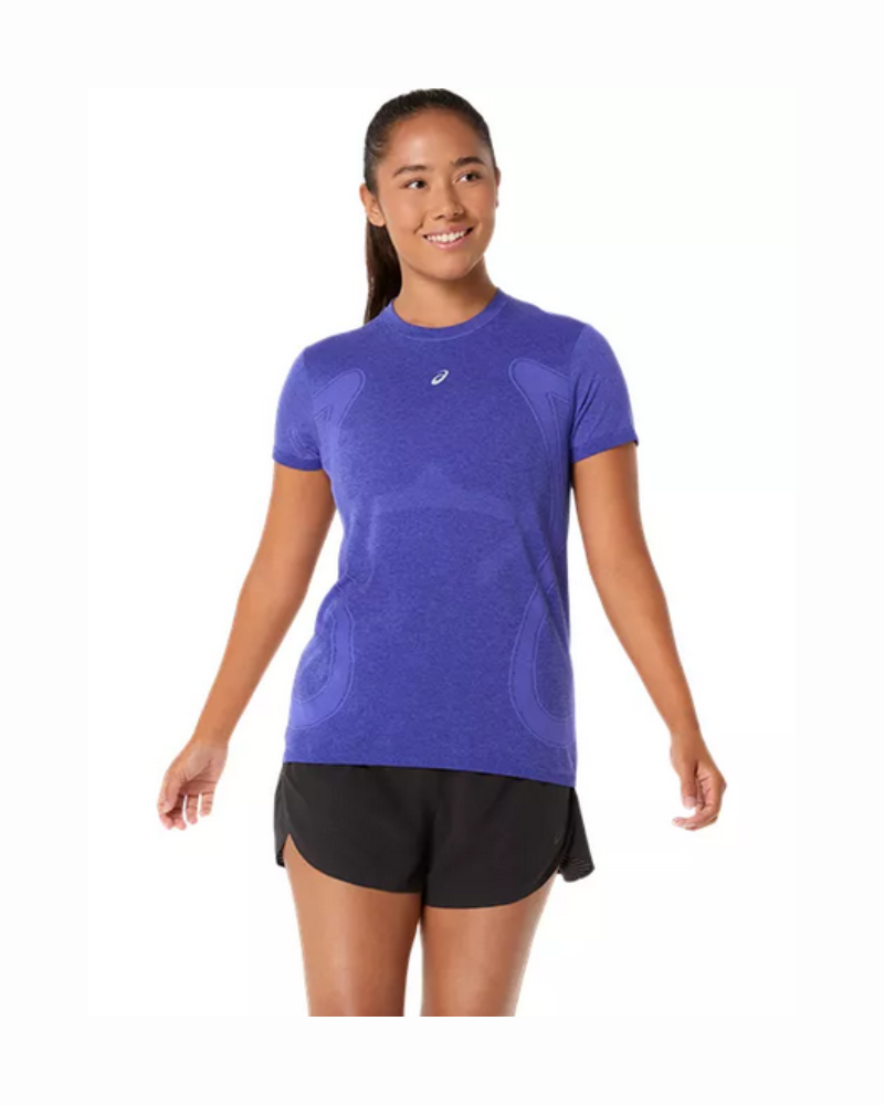Dámske tričko ASICS ROAD SEAMLESS SS TOP - seamless konštrukcia a mäkčené materiály maximalizujú voľnosť pohybu a komfort počas behu. Vysoko priedušný materiál spoločne s technológiou ASICS MotionDryudržujú vysoký komfort vďaka okamžitému prenosu potu.