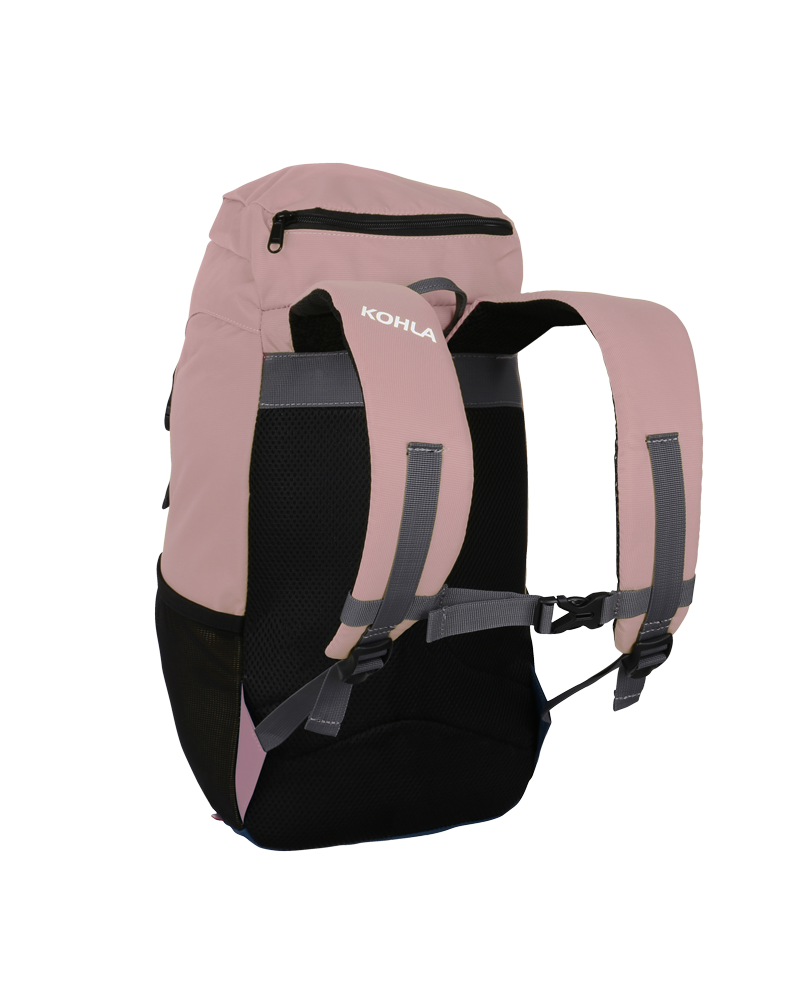 Predné vrecko s reflexným pásikom , logom KOHLA a horským kamzíkom "Rocky" je rýchlo prístupné pomocou suchého zipsu. Po oboch stranách sú elastické sieťované vrecká na fľašu . Vo veku batohu je dostatok priestoru na drobnosti a ľahko sa zapína pomocou dvoch plastových praciek.