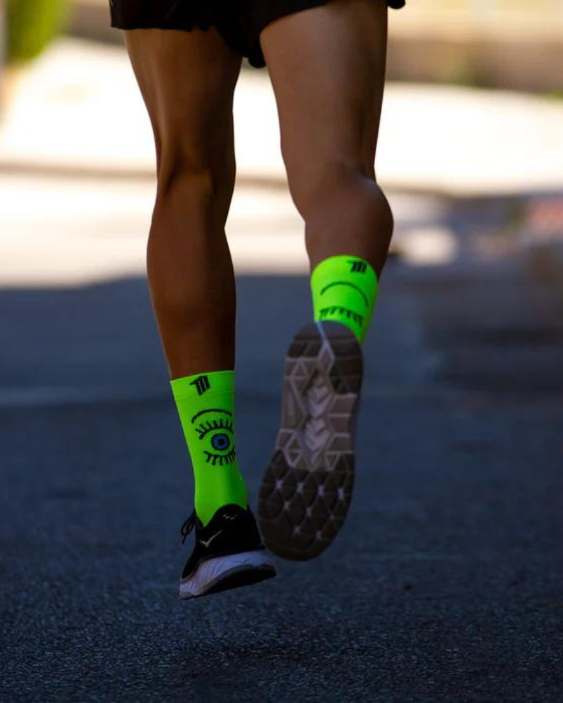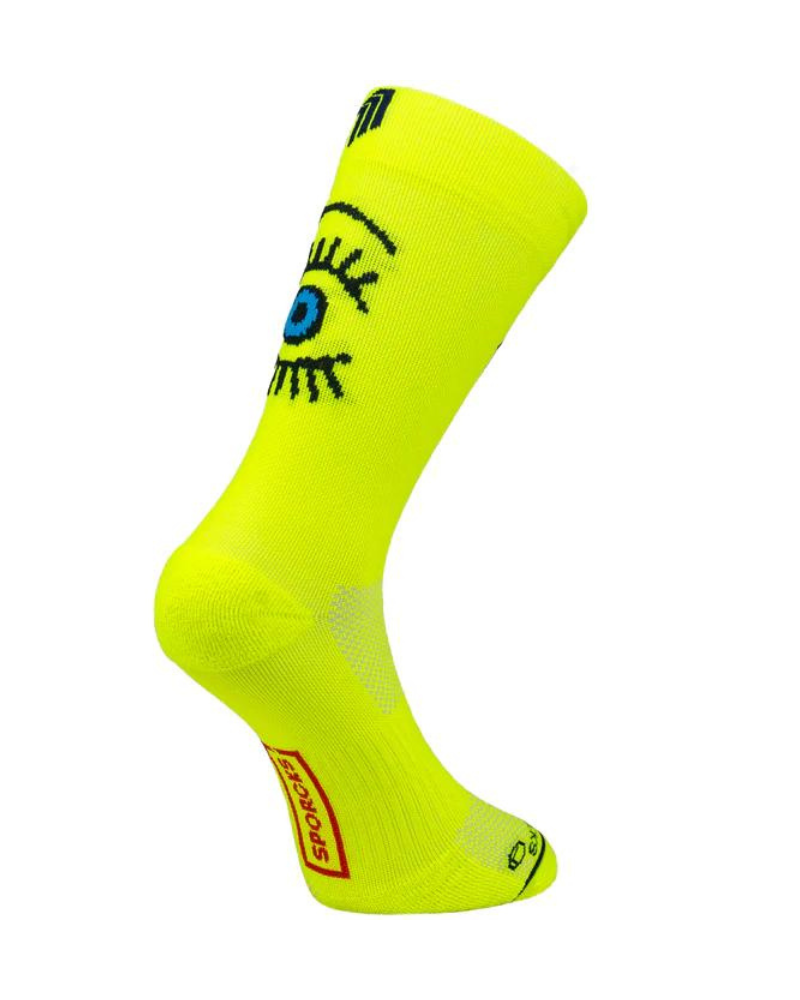 Ponožky SPORCKS EYE YELLOW jsou stylové běžecké ponožky, poskytují větší podporou v oblasti kotníku a metatarzálních partií. Jsou středně kompresní, což napomáhá krevnímu oběhu. Materiál paty a špičky minimalizuje nárazy. Předchází vzniku puchýřů.