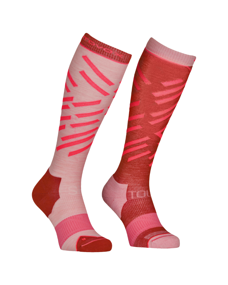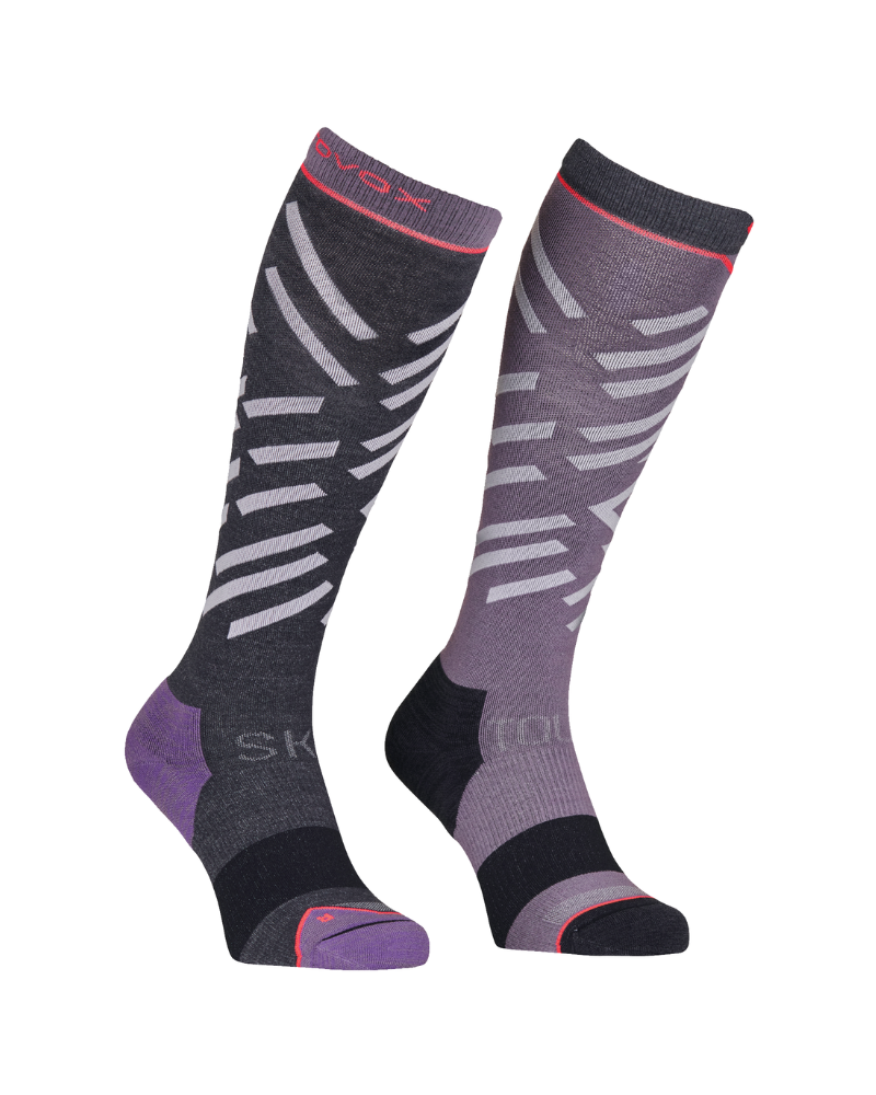 Ponožky ORTOVOX Ski Tour Long Socks W jsou dokonalým společníkem pro náročné lyžařské túry a vzrušující sjezdy. Ponožka kombinuje polyamid pro odolnost a dlouhou životnost s nejjemnější merino vlnou pro vynikající tepelnou izolaci a odvod vlhkosti. Merino vlna reguluje teplotu a udržuje nohy v suchu a teple i při intenzivní aktivitě. Vysoký podíl streče zajišťuje optimální přizpůsobení a maximální pohodlí, zatímco zesílené oblasti na špičce a patě poskytují dodatečnou ochranu a odolnost.