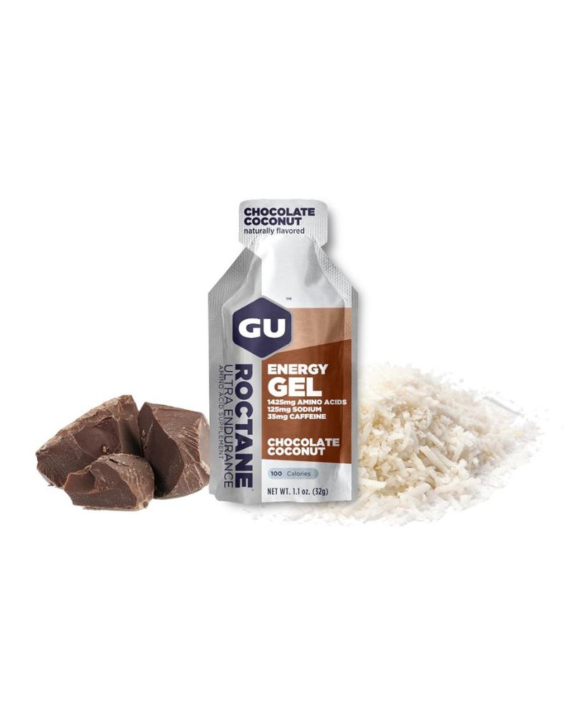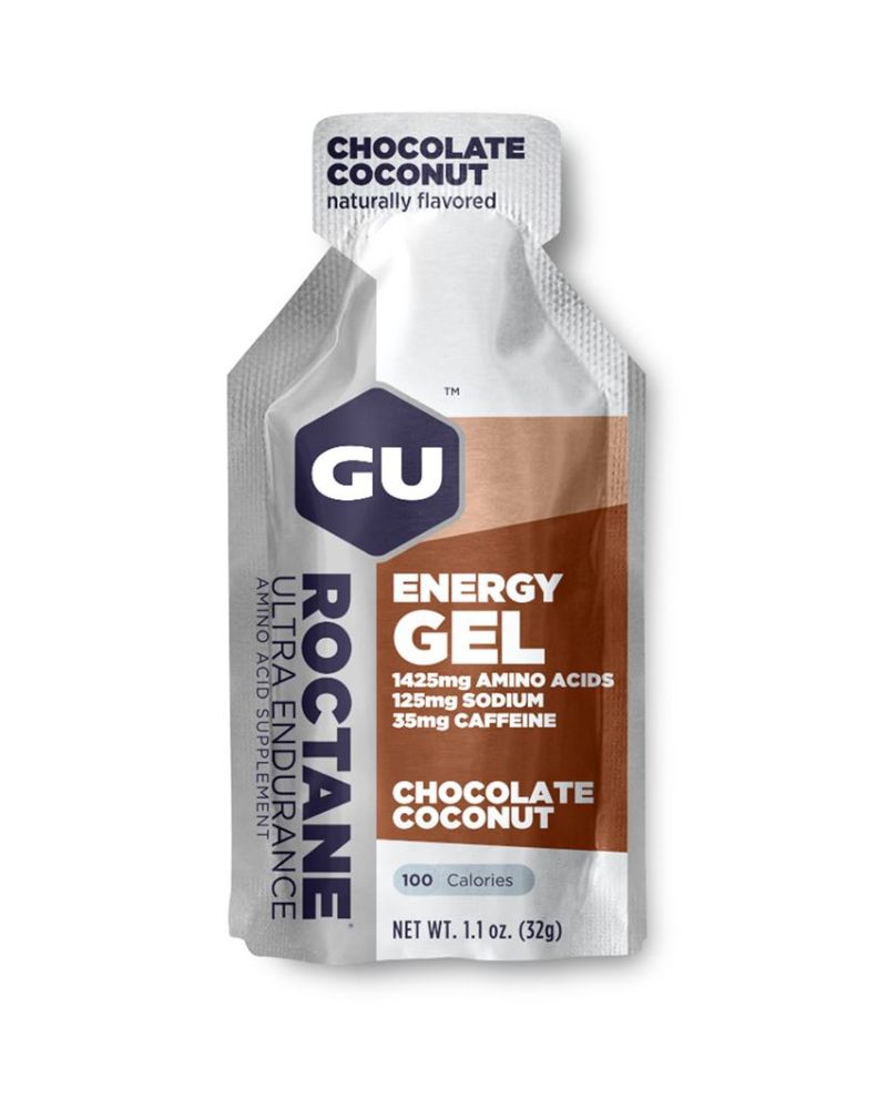 GU Roctane Energy gél - je jedinečný zdroj potrebných živín a energie pre dlhé vzdialenosti a extrémne výkony, najmä pri pretekoch. V iba v 100 kalóriách je obsiahnutých 1425 mg vetvených aminokyselín, leucín, valín a izoleucín. V porovnaní s GU gélom obsahuje oveľa viac esenciálnych aminokyselín, ktoré si telo samo nedokáže syntetizovať, ale potrebuje ich na ochranu svalových vlákien pri fyzickom výkone. Ornithine alfa-ketaglutarát (OKG) blokuje nežiaduce ketabolické procesy (svalové kŕče). Obsah 35 mg kofeínu stimuluje nervovú sústavu k lepšej koncentrácii. Rovnaké použitie ako GU gél, ale s oveľa vyšším účinkom. Energetický gél ROCTANE obsahuje 3x viac BCAA a 2x viac elektrolytov v porovnaní s našimi pôvodnými energetickými gélmi. Obsahujú tiež aminokyseliny - taurín (pomáhajú udržiavať stiahnuteľnosť srdca a zlepšujú srdcový výdaj počas dlhých cvičení) a beta-alanín (pomáha udržiavať stabilný ph vo vnútri buniek a tým zabrániť ich poškodeniu). Energetické gély ROCTANE dodávajú rovnakú kombináciu sacharidov a rovnaký počet kalórií ako Enery Gely. Energetické gély ROCTANE sú kľúčovým nástrojom pre vysokú intenzitu alebo dlhodobú aktivitu, kedy dochádza k rýchlemu vyčerpaniu živín a poškodeniu svalov.
