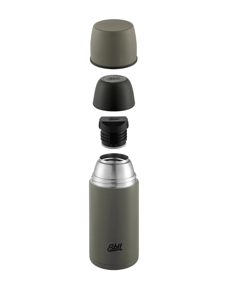Vakuová dvoustěnná termoska Esbit z nerezové oceli. Vnitřní stěny termosky jsou pokryty vrstvou stříbra, které zlepšuje izolační vlastnosti.