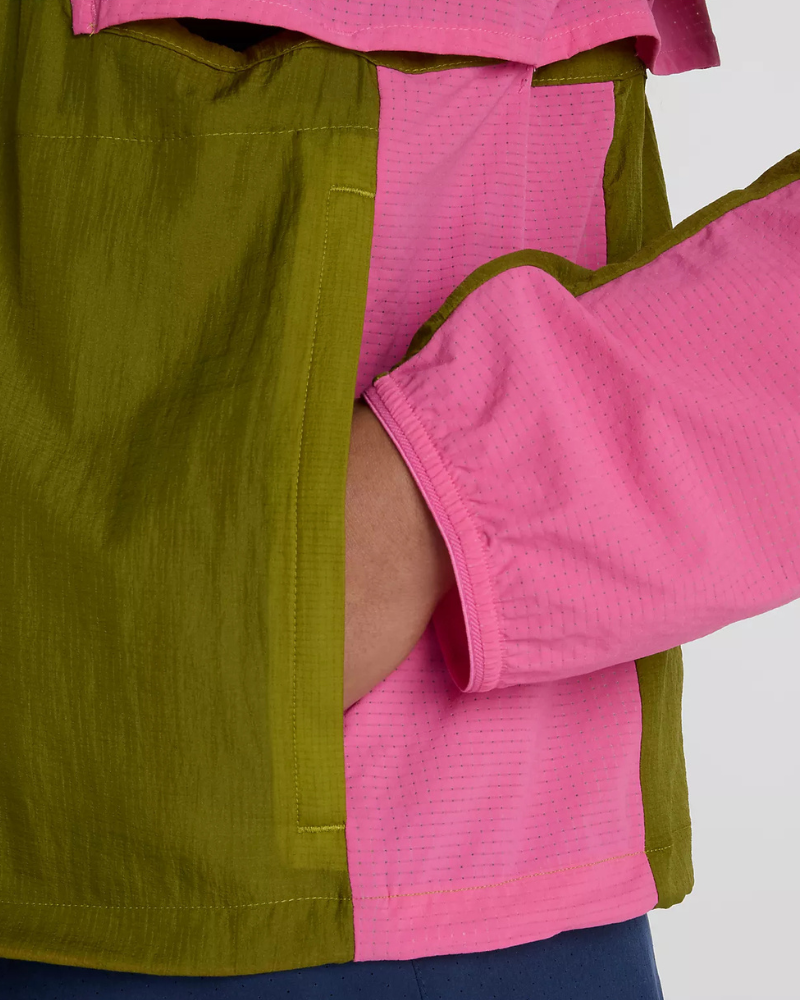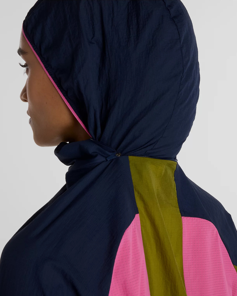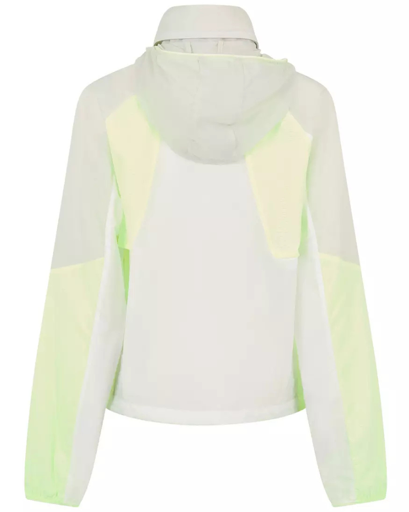 Bunda se zapíná na obousměrný zip a má skladatelnou kapuci, celá se dá snadno a efektivně složit do malých rozměrů. Boční kapsy na zip umožňují mít drobnosti po ruce a šířku lze nastavit pomocí šňůrky ve spodní části.