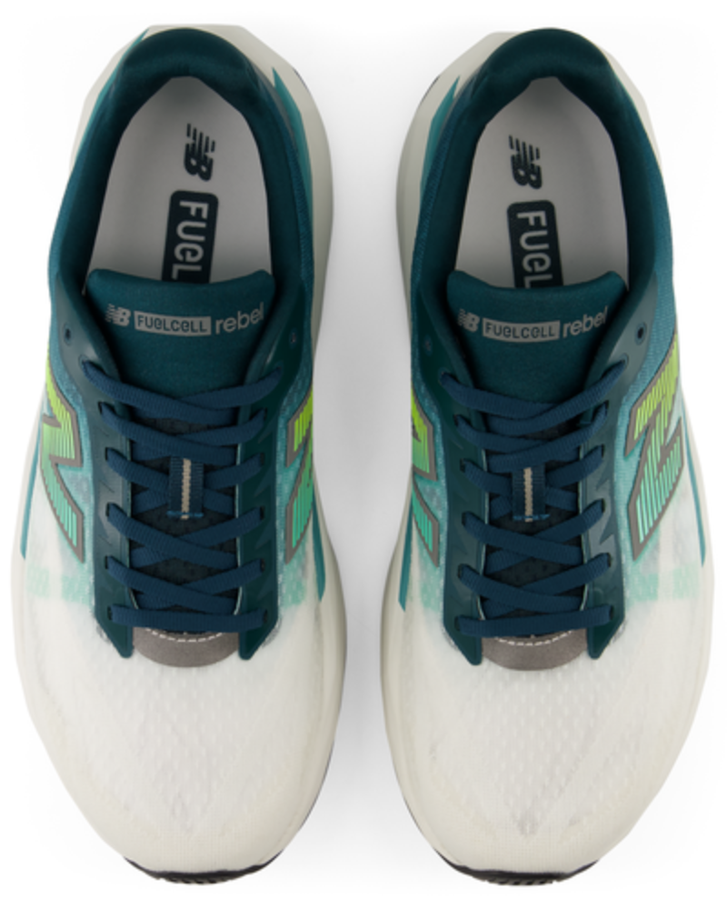 Rebel v5 je specializovaná obuv pro lidi s neutrálním/supinovaným chodidlem na běhání po asfaltu a tvrdém povrchu. Prodyšný svršek FantomFit je vyroben ze syntetických materiálů. Geometrická mezipodešev FuelCell sestávající ze směsi pěn PEBA a EVA poskytuje vysokou úroveň odpružení při zachování dynamického pocitu. Propracovaná podrážka s větším množstvím pryže v přední části chodidla v kombinaci s pěnou FuelCell umožňuje efektivnější přenos energie pro dynamičtější krok. Větší množství použité gumy navíc prodlužuje životnost došlapu.