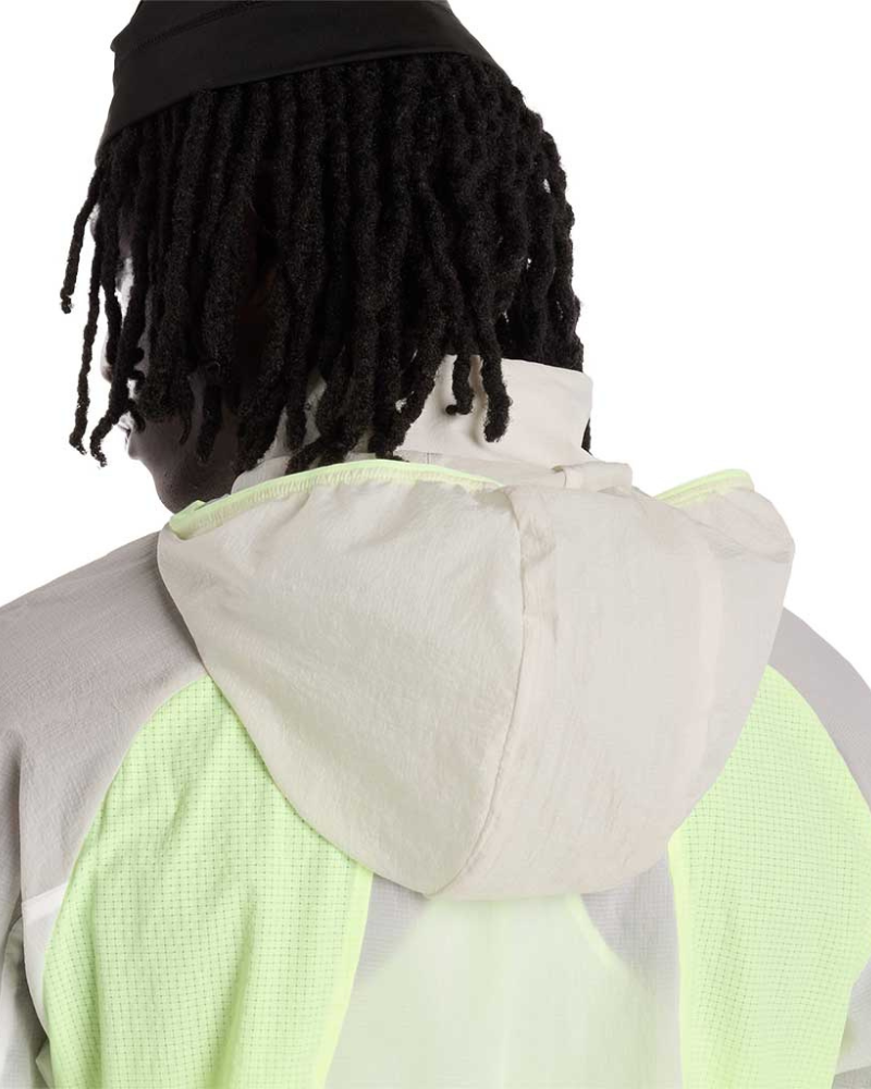 Pánská bunda NEW BALANCE RC Jacket je lehká pánská bunda vyrobená ze 100% recyklovaného nylonu, tkanina má vodoodpudivou úpravu DWR . Bunda se zapíná na obousměrný zip a má skladatelnou kapuci, celá...celý popis