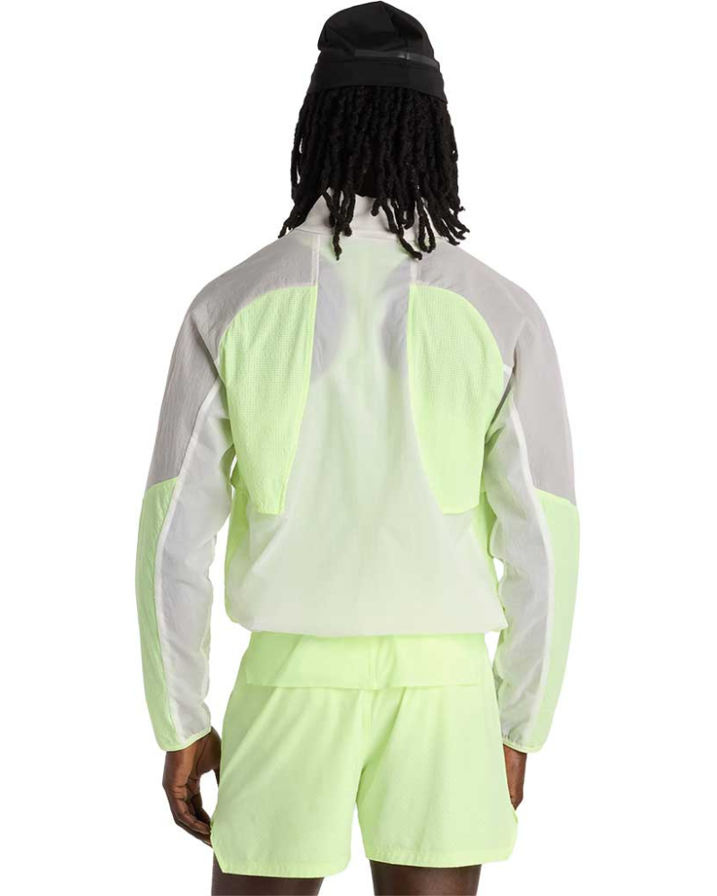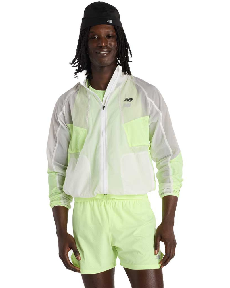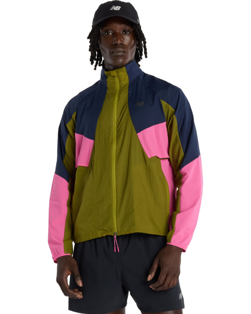Pánská bunda NEW BALANCE RC Jacket je lehká pánská bunda vyrobená ze 100% recyklovaného nylonu, tkanina má vodoodpudivou úpravu DWR .