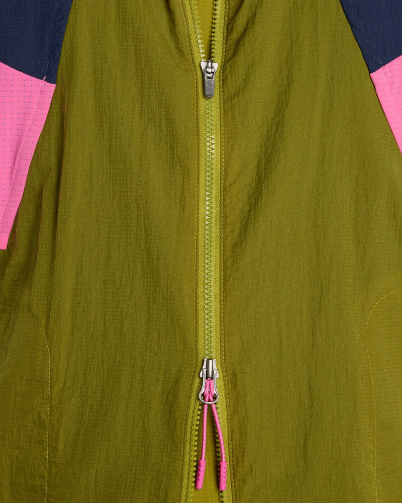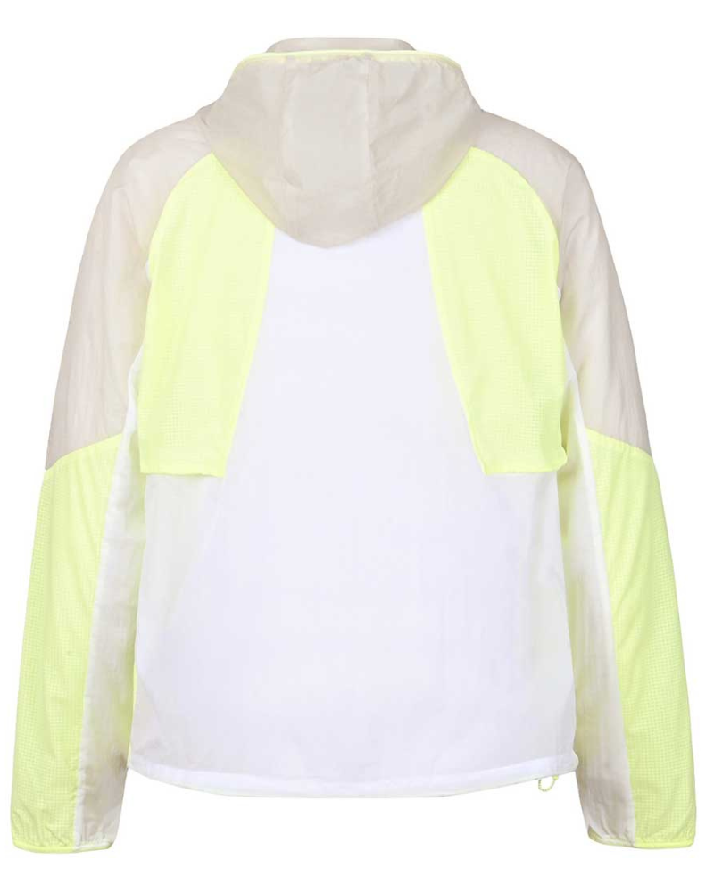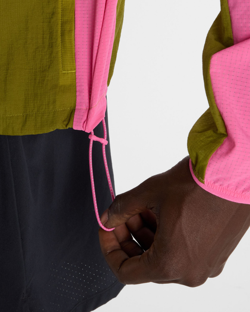 Bunda se zapíná na obousměrný zip a má skladatelnou kapuci, celá se dá snadno a efektivně složit do malých rozměrů. Boční kapsy na zip umožňují mít drobnosti po ruce a šířku lze nastavit pomocí šňůrky ve spodní části.