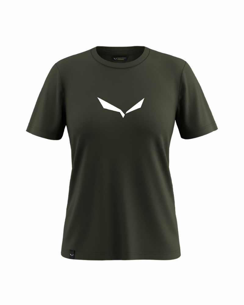 Dámské triko SALEWA SOLID DRY W T-SHIRT klasické, značkové triko s ikonickým logem orla je vyrobeno z bavlny drirelease®, což je měkká, prodyšná, funkční strečová tkanina, která schne čtyřikrát rychleji než běžná bavlna.
