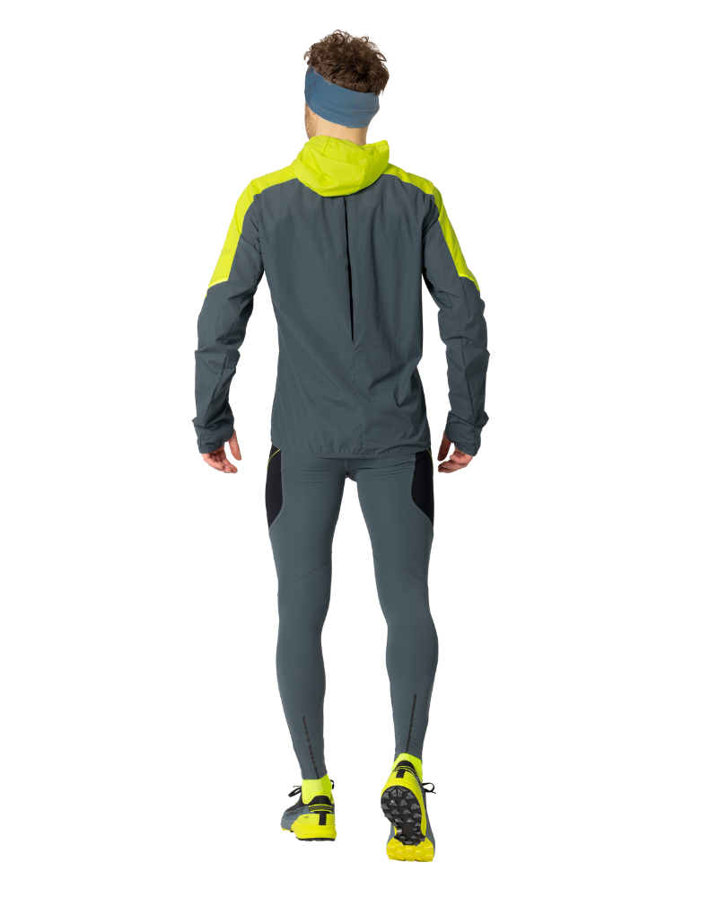 Úplná volnost pohybu je zaručena díky ergonomickému střihu a strečové tkanině . Dodatečný objem na zádech vám umožní nosit bundu pohodlně přes běžeckou vestu. Abyste se při běhu nepřehřívali, bunda je pod pažemi perforovaná pro zvýšení prodyšnosti. Mimořádně chytré: bunda se dá při velkém zatížení zcela rozepnout a praktický patentní knoflík ve výšce hrudníku ji drží pohromadě. Přiléhavou kapuci lze v případě potřeby vyhrnout a připnout, aby při běhu nepřekážela.