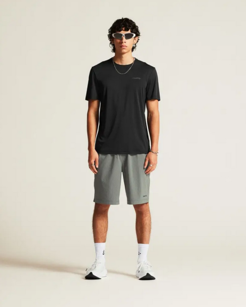 Pánské triko CRAFT Core Essence je příjemné funkční tréninkové triko, které se hodí na širokou škálu sportovních aktivit. Funkční materiál rychle odvádí pot od těla pryč a meshové panely na zádech pomáhají s termoregulací.