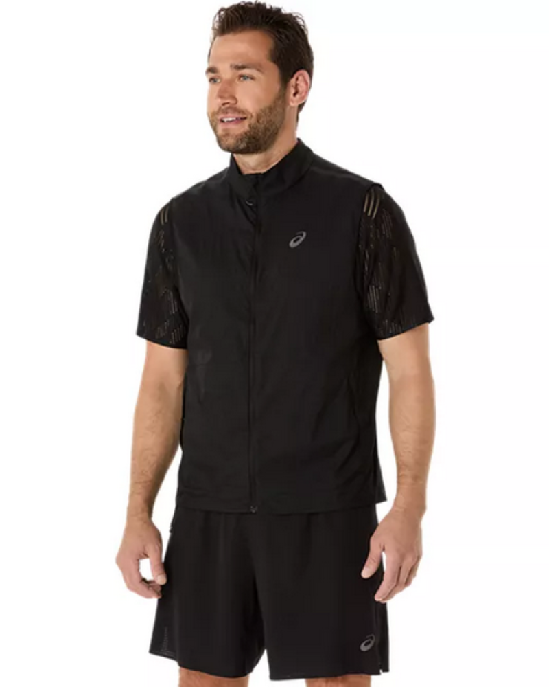 Pánská vesta ASICS METARUN PACKABLE GILET - vytvořeno na běžecké dny, kdy se nemůžete spolehnout na počasí. Tuto sbalitelnou vestu lze během běhu snadno vyjmout a sbalit do zadní kapsy. Prémiová lehká tkanina tohoto oděvu pomáhá chránit před chladem a větrem.