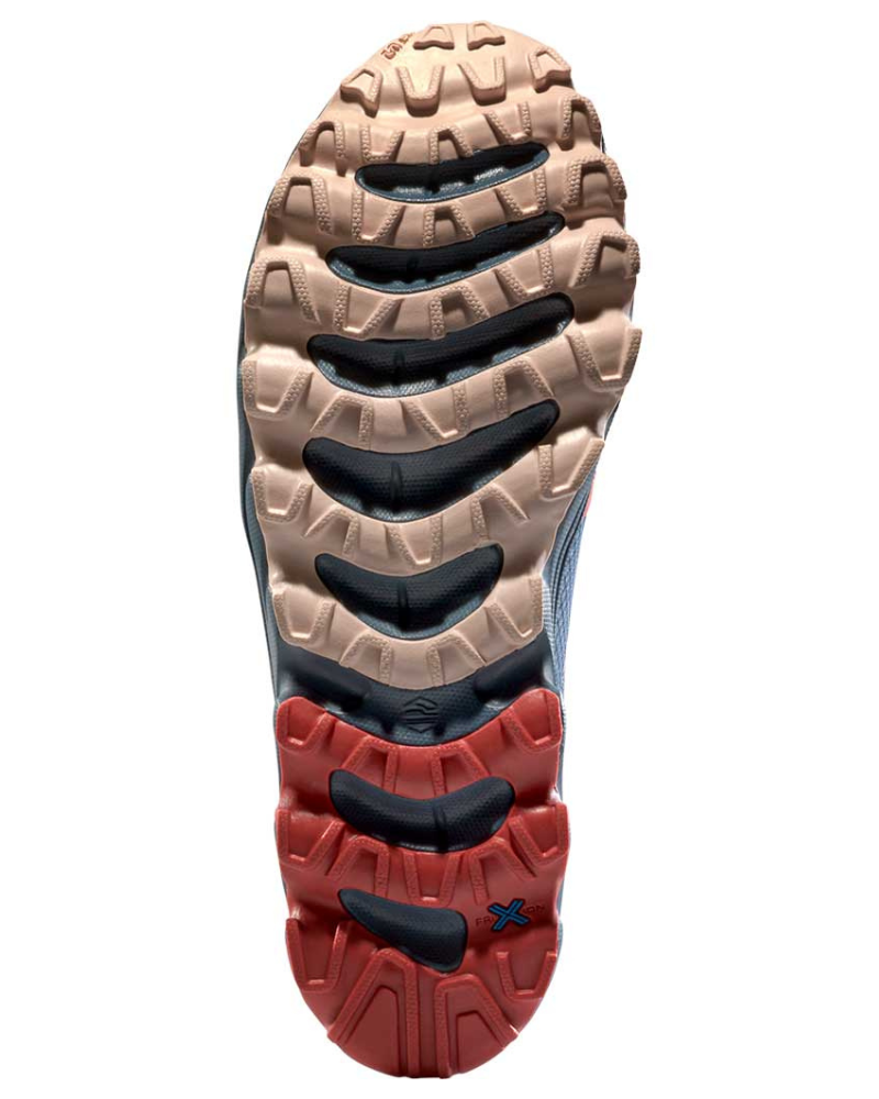Střih je mimořádně pohodlný a vychází z oblíbeného modelu Helios. Pohodlná mezipodešev s 3D pěnovými vycpávkami zaručuje maximální pohodlí. Protiskluzová podrážka FriXion Blu je ideální pro používání v tvrdém a skalnatém terénu. Zpevněná, termoformovaná špička pomáhá chránit před nárazy a oděrem.