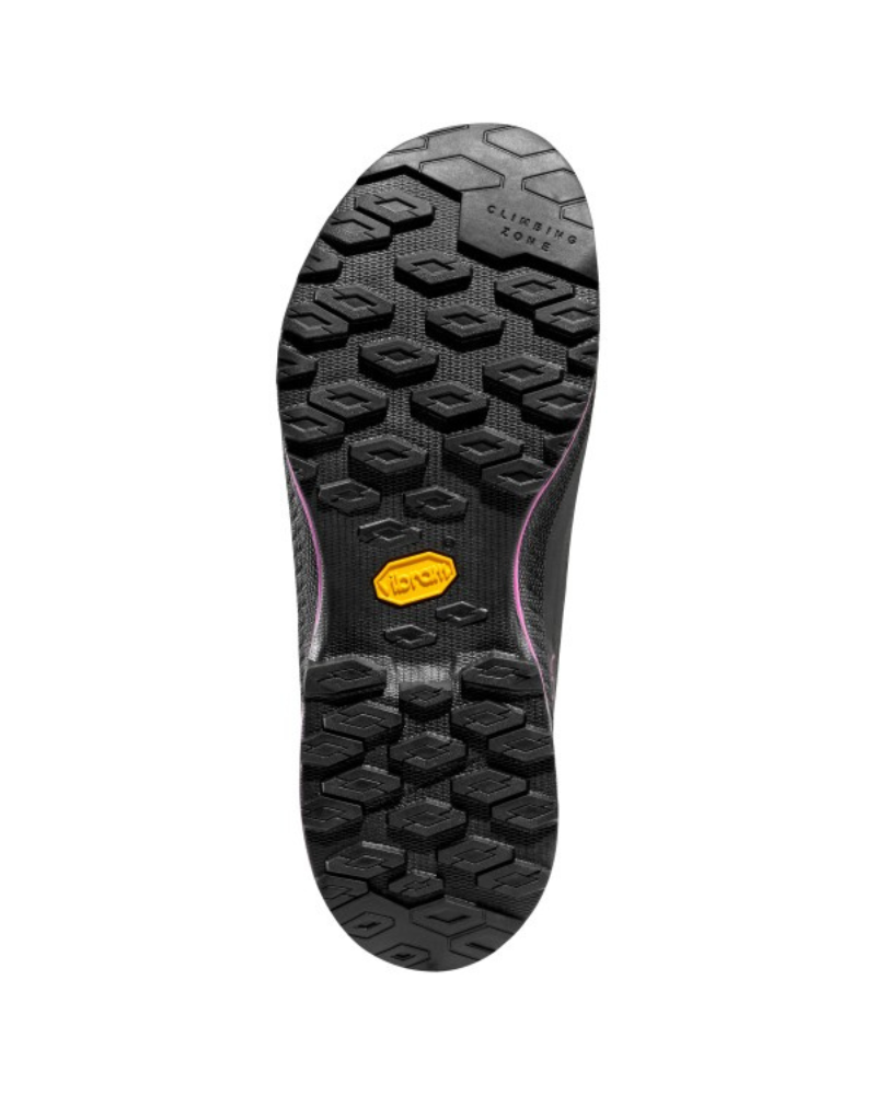 Podrážka Vibram® MegaGrip poskytuje pevnou přilnavost v různorodém terénu, zatímco lezecká zóna v oblasti špičky podporuje přesnou práci nohy při přímých lezeckých přístupech.