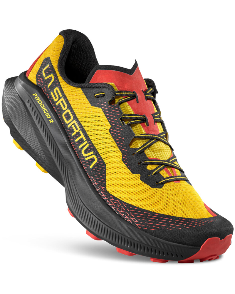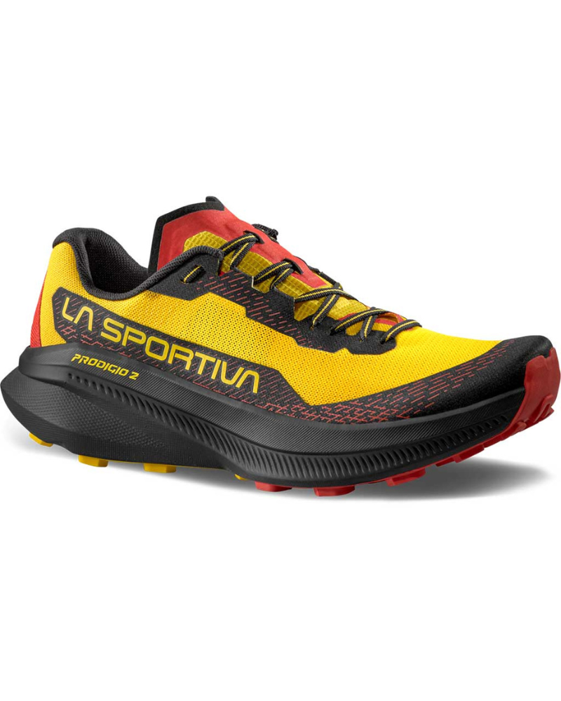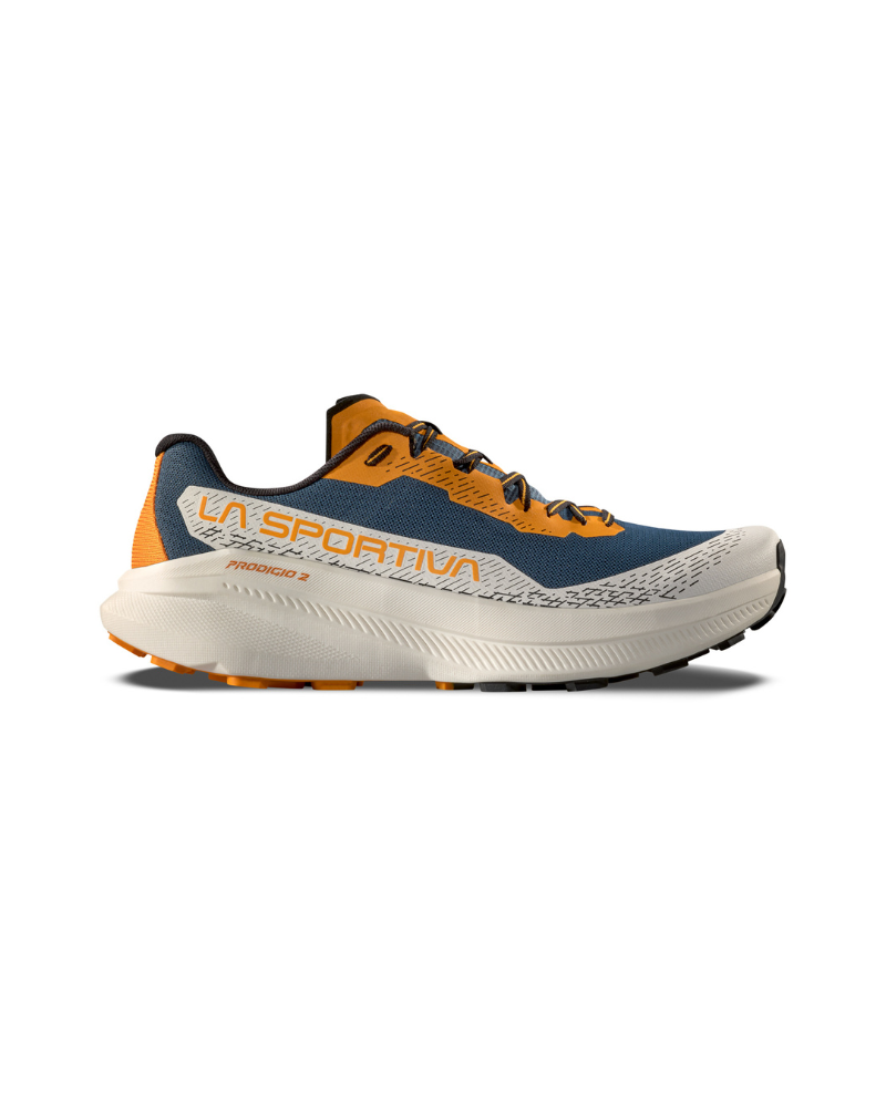 Pánská běžecká obuv LA SPORTIVA Prodigio II S je univerzální trailová běžecká obuví, se kterou budete připraveni doslova na všechno. Můžete se vydat na pohodový tréninkový běh nebo se pustit do vyčerpávajícího vytrvalostního závodu v podobě horského ultramaratonu. Ať se rozhodnete jakkoli, tato obuv vám vždy poskytne sebevědomý a silný výkon v rozmanitém terénu.