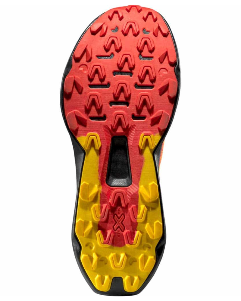 Na první pohled je zřejmé, že každý detail modelu Prodigio 2 byl navržen tak, aby splňoval požadavky i těch nejnáročnějších uživatelů. Speciální konstrukce podrážky Frixion® Red s dvojitou tuhostí poskytuje dokonalou stabilitu a usnadňuje odvalování nohy. Mezipodešev z paměťové pěny XFlow™ pro změnu poskytuje dokonalé odpružení a vysokou návratnost energie. Prodyšný svršek podpoří rychlé schnutí a široký prostor pro prsty nabízí dostatek místa pro vaše prsty.