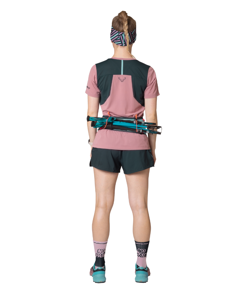 Najdôležitejšie veci (ako napr. Vetrovka, proviant) je možné bez komplikácií schovať do štyroch priehradiek na tomto praktickom bežeckom opasku. Okrem veľkého vrecka na 500 ml mäkkú fľašu (soft flask) má opasok aj dve menšie vrecká a vrecko na zips na peniaze alebo kľúč. Na zadnej strane opasok disponuje dvoma nastaviteľnými úchytmi na palice. Váži iba 60 gramov.