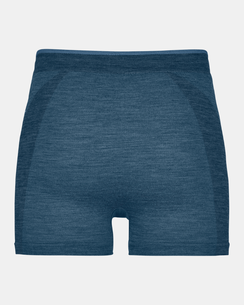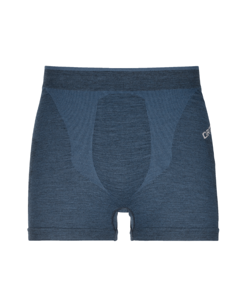 Pánské boxerky Ortovox 230 Competition Boxer se vyrábějí bezešvou technikou kruhového pletení, takže když se ochladí a jde do tuhého, je každá část těla pokryta správnou tloušťkou merino vlny. Základní žebrovanou strukturu tvoří merino vlna s gramáží 190 g/m², která dodává funkčnímu výrobku pružnost pro maximální volnost pohybu.