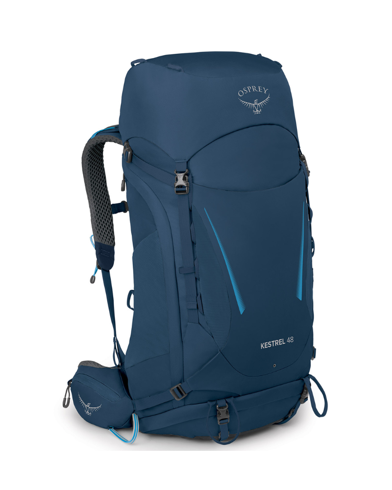 Trekingový batoh Osprey Kestrel 48 - Atlas Blue je ideální model pro víkendové túry v horách. Díky němu můžete pohodlně přenášet veškeré potřebné vybavení, které lze vhodně rozmístit do mnoha kapes. Tento trekingový batoh má také řadu konstrukčních prvků pro pohodlí na trase.