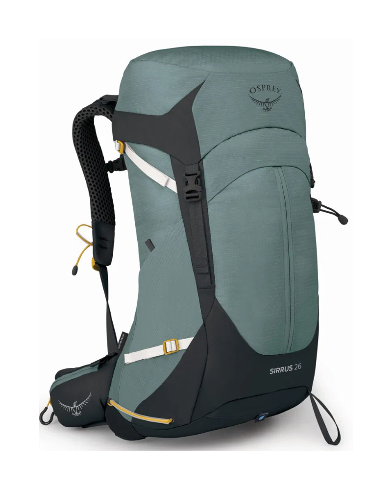 Dámský batoh Osprey Sirrus 26 ze síťoviny má jednu hlavní komoru s horním přístupem, která byla zajištěna chlopní. Model je kompatibilní s hydratačním systémem . Batoh má na přední straně prostornou kapsu opatřenou zipem. Další dvě kapsy naleznete v horní části na chlopni, jedna prostorná z vnější strany a druhá menší z vnitřní strany. Model má také dvě boční síťované kapsy, jakož i dvě kapsy opatřené zipem, které najdete na bederním pásu. Batoh oceníte i pro jeho systém Stow-on-the-Go™ pro nošení trekingových holí na ramenním popruhu. Model má na přední straně také poutka na ledovou sekeru. V sadě s batohem dostanete obal do deště.