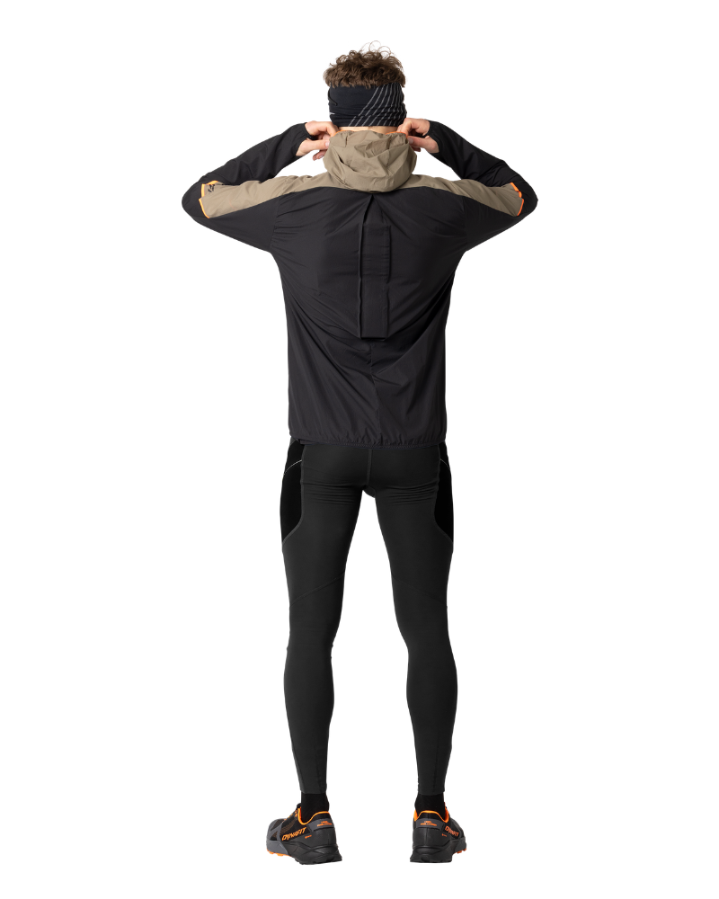 Úplná voľnosť pohybu je zaručená vďaka ergonomickému strihu a strečovej tkanine. Dodatočný objem na chrbte vám umožní nosiť bundu pohodlne cez bežeckú vestu. Aby ste sa pri behu neprehrievali, bunda je pod pažami perforovaná pre zvýšenie priedušnosti. Mimoriadne šikovné: bunda sa dá pri veľkom zaťažení úplne rozopnúť a praktický patentný gombík vo výške hrudníka ju drží pohromade. Priliehavá kapucňa sa dá v prípade potreby vyhrnúť a pripnúť, aby pri behu neprekážala.