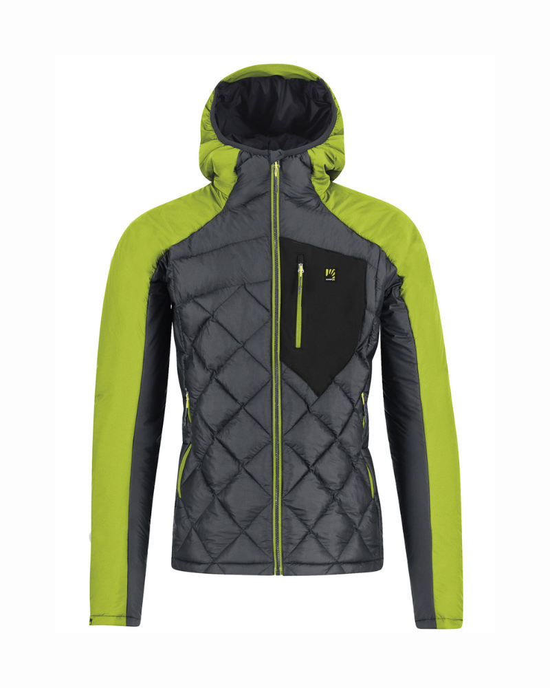 Má kapucňu a je vyrobená z nepremokavej tkaniny K-Dry na rukávoch, kapucni a spodnej časti odevu, čo zaisťuje nepremokavosť 20 000 mm vodného stĺpca. Tkanina Pertex® Quantum na častiach prednej a zadnej časti poskytuje ochranu pred vetrom a vynikajúcu priedušnosť. Ľahká a skladná bunda váži iba 559 g, ale ponúka vysokú úroveň tepla vďaka hybridnej izolácii: PrimaLoft® Silver Active 100 na rukávoch, kapucni, bokoch a spodnej časti a K-Synthetic Down Micro v strednej časti, obe zo 100 % recyklovaného polyesteru. Bunda navrhnutá tak, aby poskytovala teplo, ochranu a štýl v každej situácii.