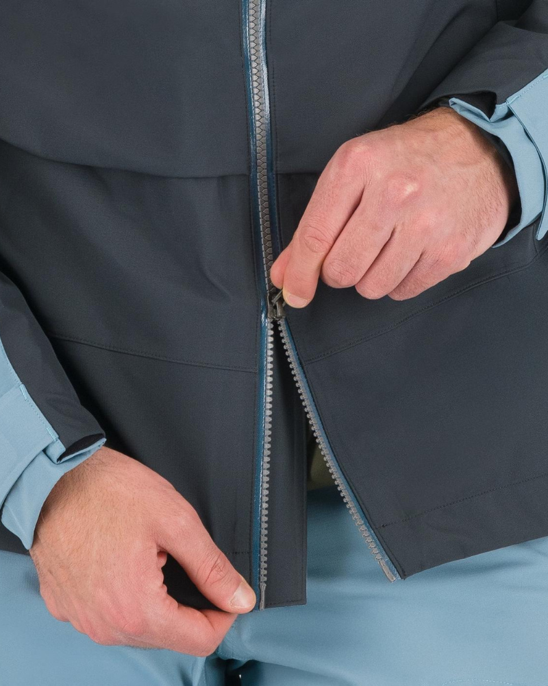 • vpredu vodeodolný, celorozopínací zips s dvojicou bežcou a vodeodolnou légou