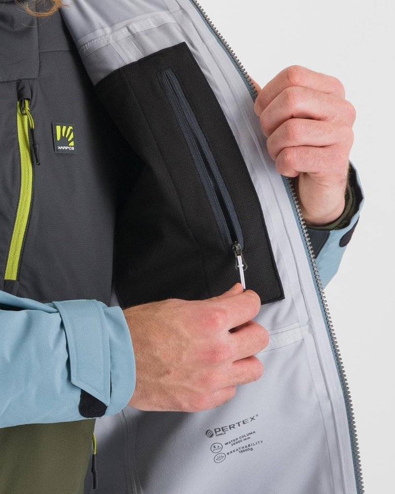 Pánska bunda KARPOS MIDI SHELL je zimná hardshellová bunda určená do extrémnych podmienok a náročného terénu. Funkčný materiál Pertex Shield Revolve, špeciálny strih a všetky utesnené švy sú zárukou ochrany pred vetrom, dažďom a chladom. Vďaka svojej kompaktnosti sa dá ľahko zbaliť do batohu. Pre lepšiu reguláciu telesnej teploty, má bunda v podpazuší ventilačné otvory uzatvárateľné vodeodolnými zipsami. Na odloženie si potrebných vecí slúžia vonkajšie aj vnútorné vrecká. Nepremokavá a vetruodolná bunda na skialp, lezenie a vysokohorskú turistiku.