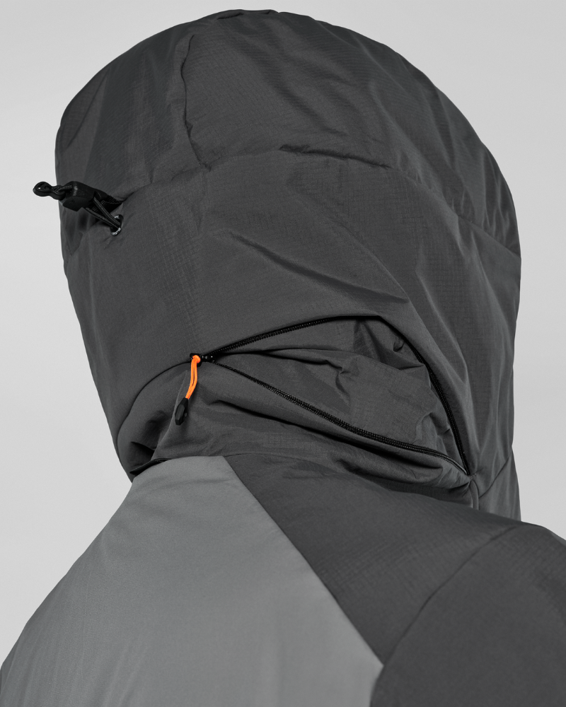 - Nastaviteľná kapucňa kompatibilná s prilbou so zipsovým predĺžením a vnútorným tvarovaným šiltom v tvare polmesiaca