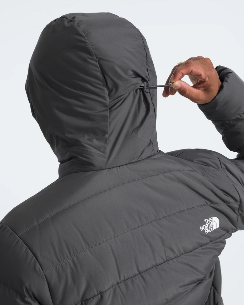- Pripevnená, nastaviteľná, trojdielna kapucňa so zapínaním na šnúrku a zámkom na zadnej strane